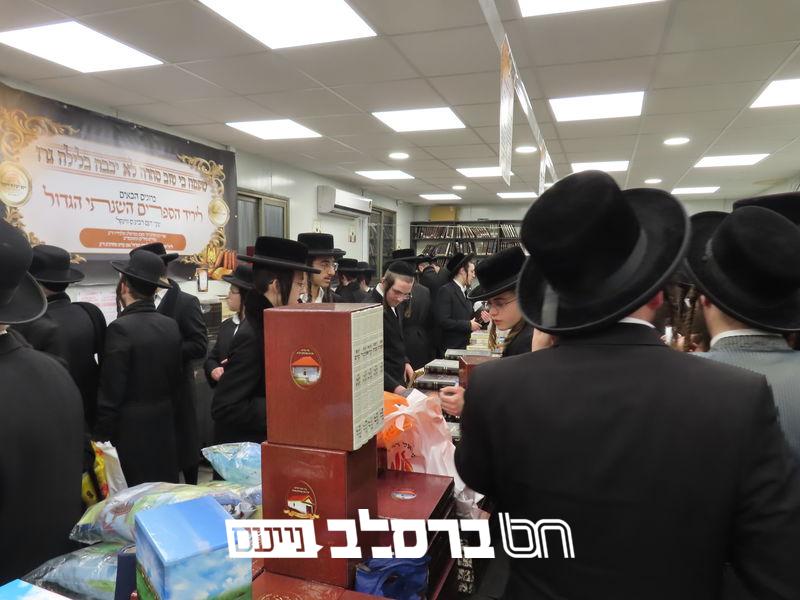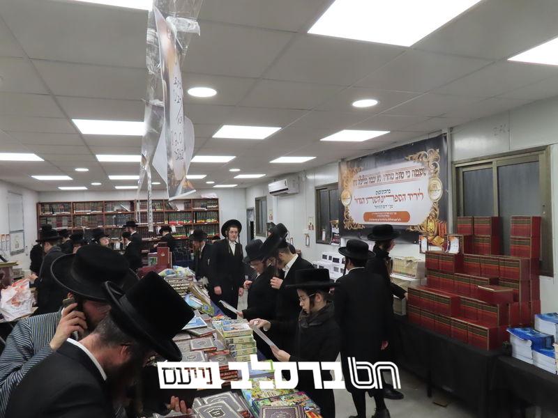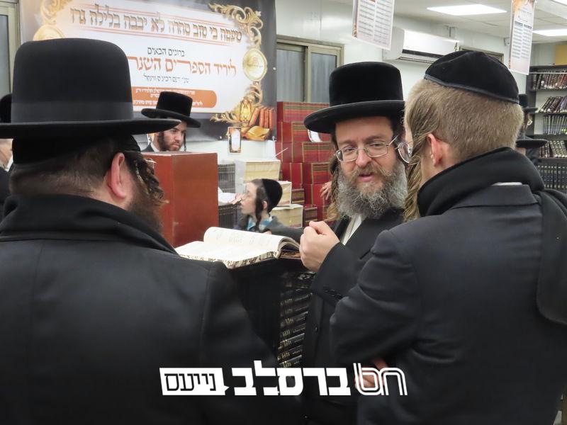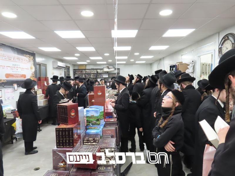 הילולא קדישא » הילולת מוהרנ"ת בעין העדשה » הפצת ספרי ברסלב • היריד שכבש את העיר בית שמש: אלפים רבים מאנ"ש וחסידים ואנשי מעשה בני קהילות נוספות השתתפו ביריד ספרי ברסלב שהתקיים ביום הילולת מוהרנ"ת בבית הכנסת 'אור הנחל' שבעיר בית שמש במשך 24 שעות רצופות כאשר במקום נרכשו רבבות ספרים במחירים מסובסדים מאוד | "עוֹלָם נֵלֵךְ לְאוֹרוֹ ע"י ר' נָתָן תַּלְמִידוֹ":