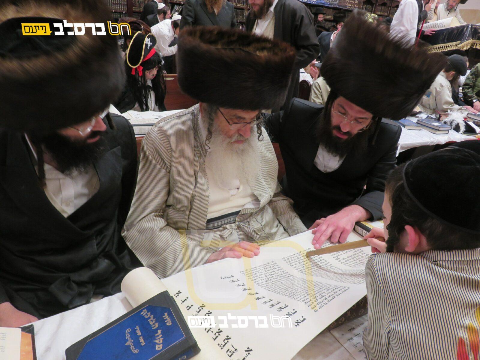 רבי ישראל נחמן עם יבל"ח בניו בעת מקרא מגילה ב'אנשי הצדיק' – פורים תשפ"ד