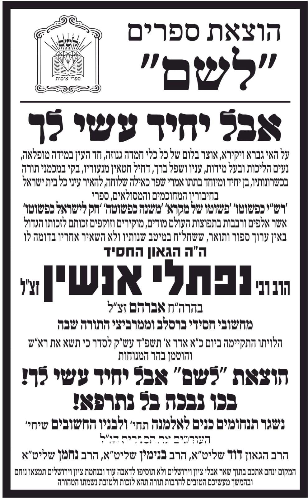 חדשות ברסלב • ביום שישי האחרון (כי תשא) הלך לעולמו הרה"ח המפואר רבי נפתלי אנשין זצ"ל מיקירי אנשי שלומינו בעיר ביתר עילית. והוא בן 66 שנה בלבד בפטירתו.