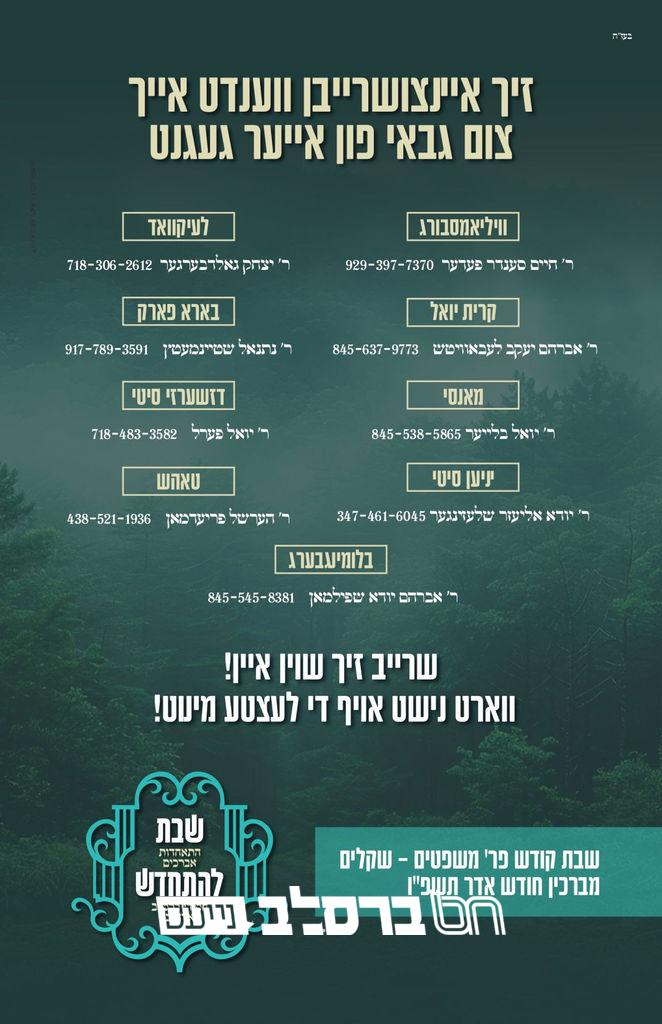 ארהב מאכט א חזקה 'שבת להתחדש' לכלל אברכי אנש כל הפרטים – שבט תשפו | ברסלב נייעס