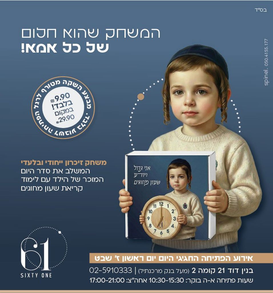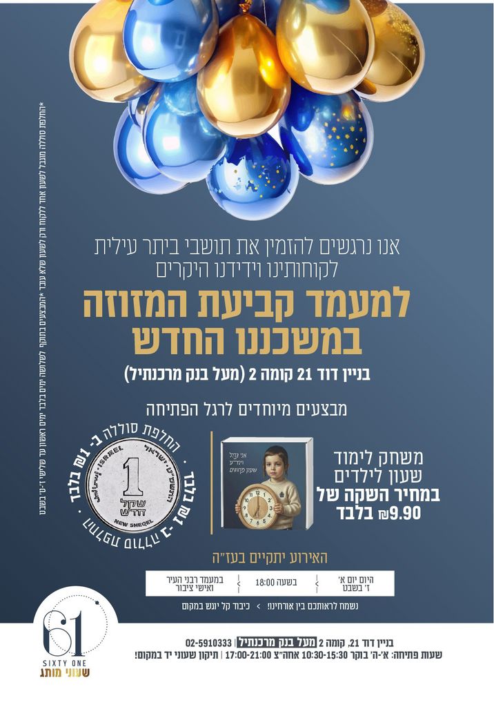 באירוע חגיגי ומרגש שהתקיים השבוע (א') במרכז העיר ביתר עילית, נחנכה החנות החדשה SIXTY ONE – שעוני מותג שזכתה להיכנס למשכנה החדש ולחגוג את מעמד קביעת המזוזה, בהשתתפות רבנים ואישי ציבור.