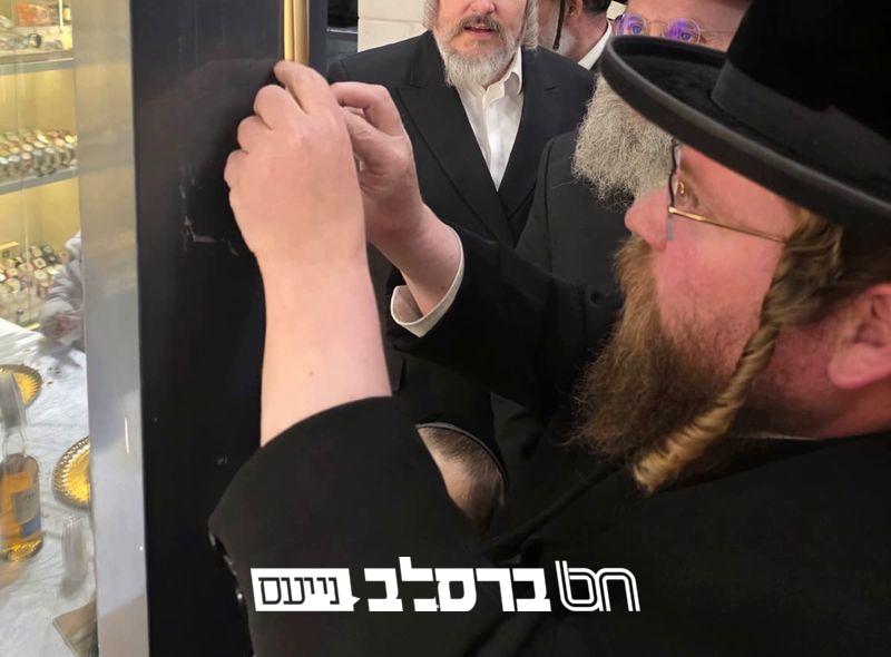 את המזוזה לשער הראשי של החנות החדשה קבע הרה"ג רבי אברהם שרגא שטיגליץ שליט"א חבר הבד"ץ דביתר עילית ורב קהילת צאנז בעיר.