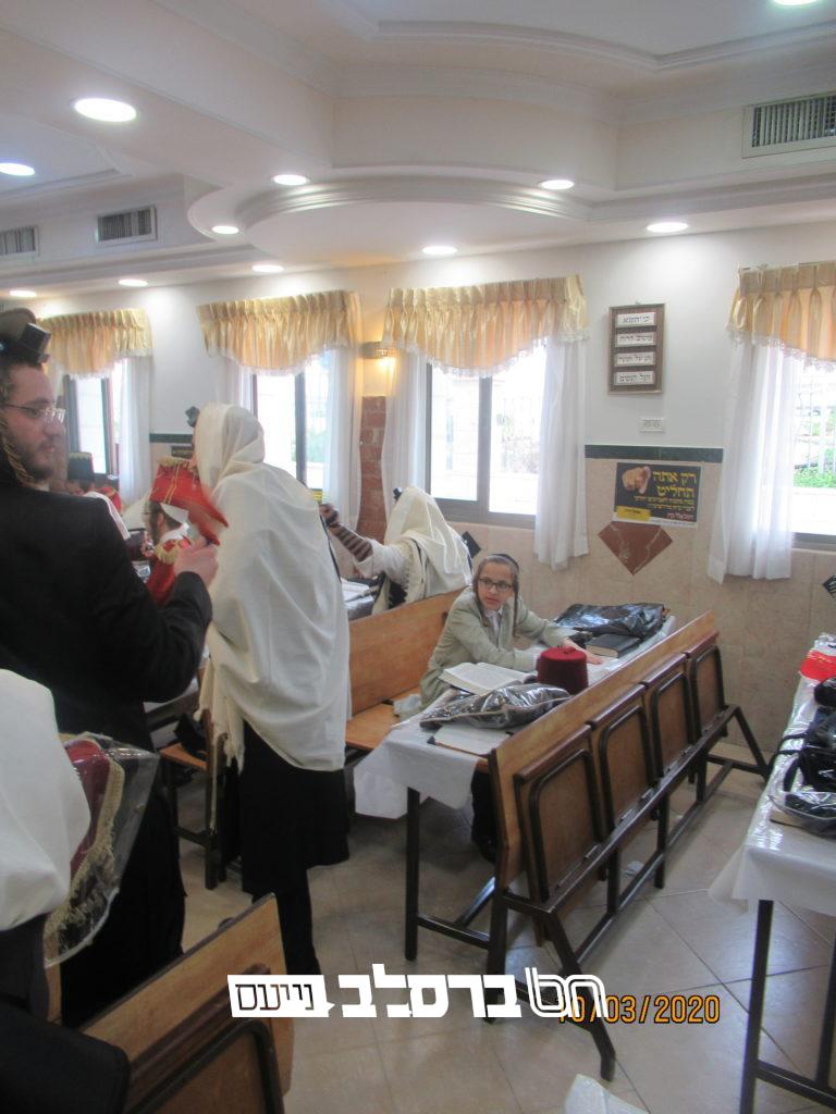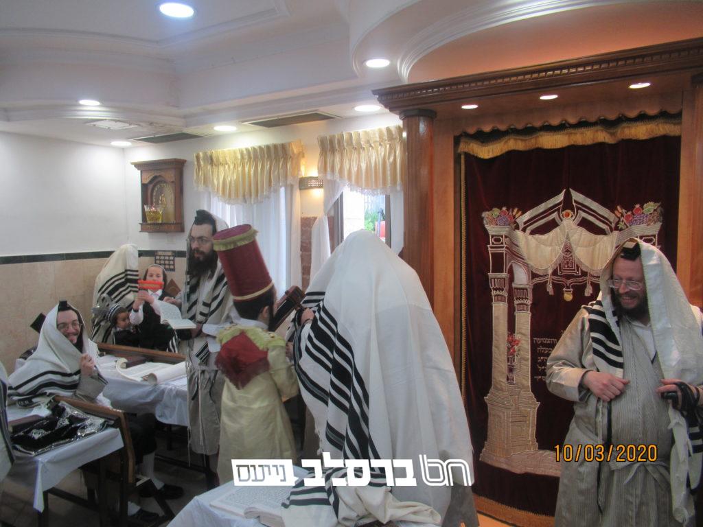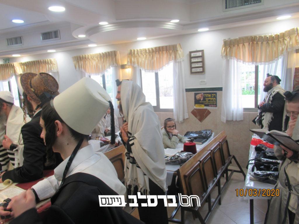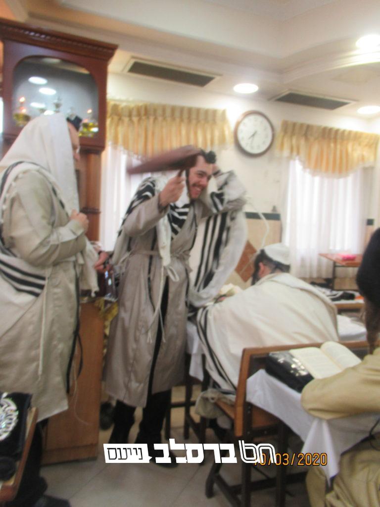 אנשי שלומינו חסידי ברסלב מתפלי ביהמ"ד "תפארת הנחל" בית שמש בקרייה החרדית, שבראשות הגה"צ רבי יעקב מאיר שכטער שליט"א בקריאת המגילה בבוקר יום הפורים.