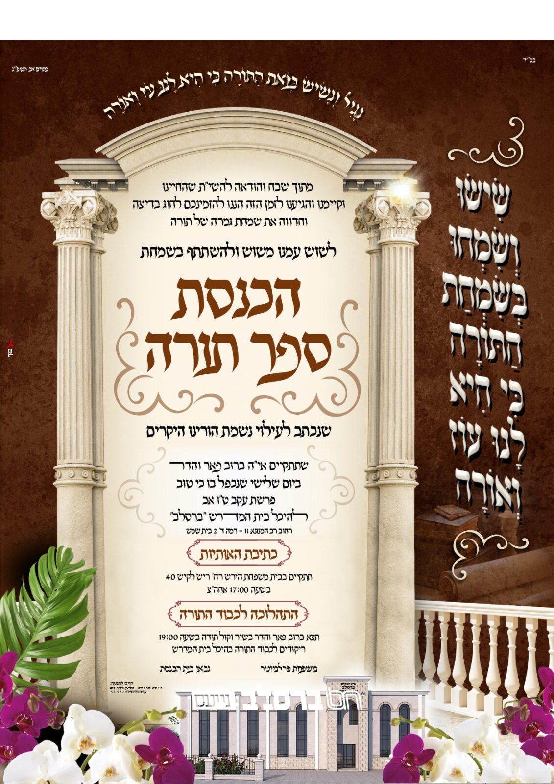 המעמד יערך בעזהי"ת מחר יום שלישי לסדר עקב, ט"ו באב הבעל"ט, בו ייכנס 'ספר התורה' המהודר ברוב פאר והדר בשערי בית הכנסת השוכן ברחוב המנונא 11 רמה ד' 2 בית שמש.