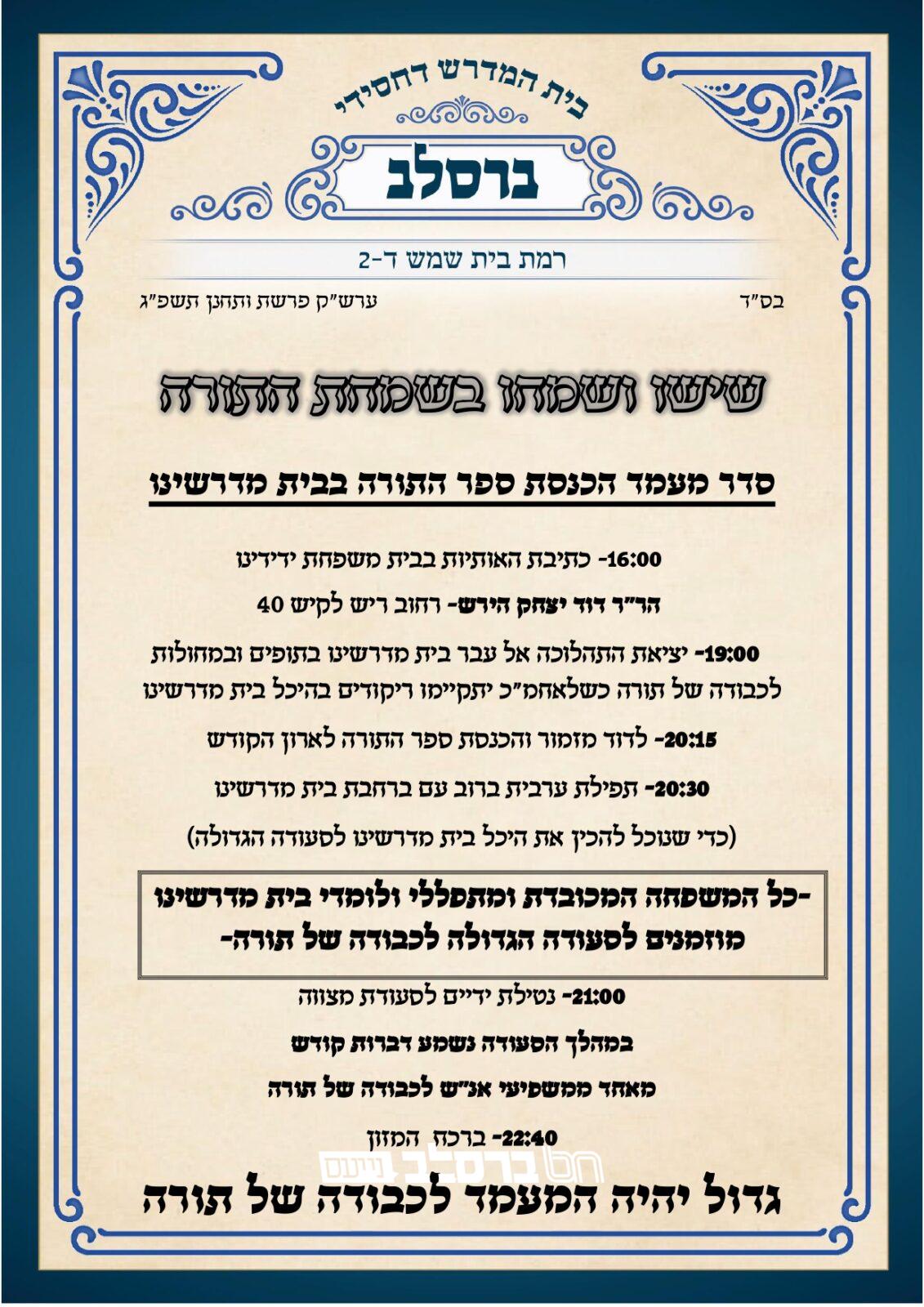 חדשות ברסלב • אנ"ש חסידי ברסלב מתפללי בית המדרש 'ברסלב' ברמה ד' 2 בית שמש, מתכוננים למעמד הכנסת 'ספר תורה' שיתקיים ביום שלישי הבעל"ט • נָגִיל וְנָשִׂישׂ בְּזֹאת הַתּוֹרָה, כִּי הִיא לָנוּ עוֹז וְאוֹרָה | הכונו: