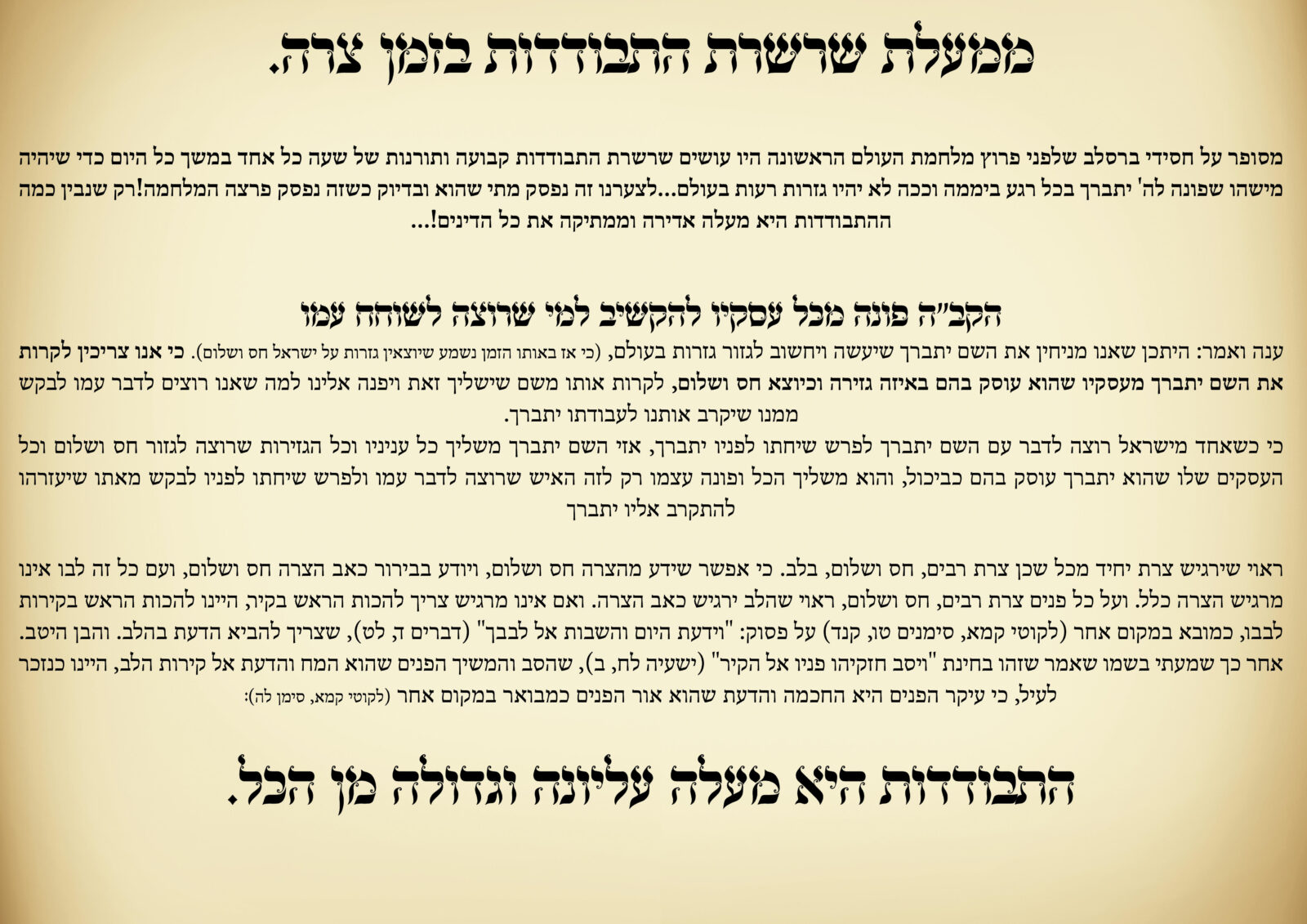 רק שנבין כמה ההתבודדות היא מעלה אדירה וממתיקה את כל הדינים!