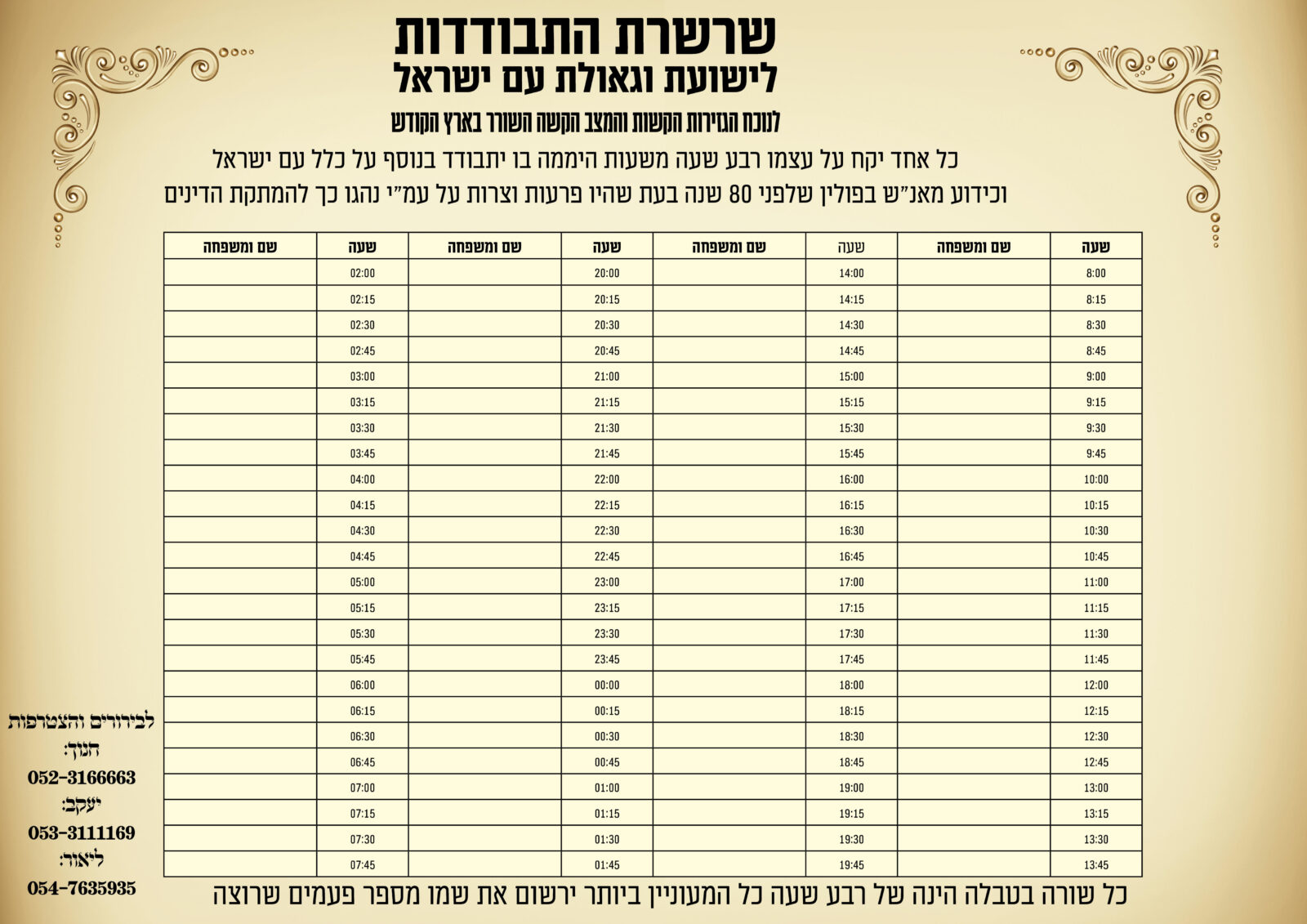 כולנו יחד מצטרפים לשרשרת ההתבודדות סביב השעון
