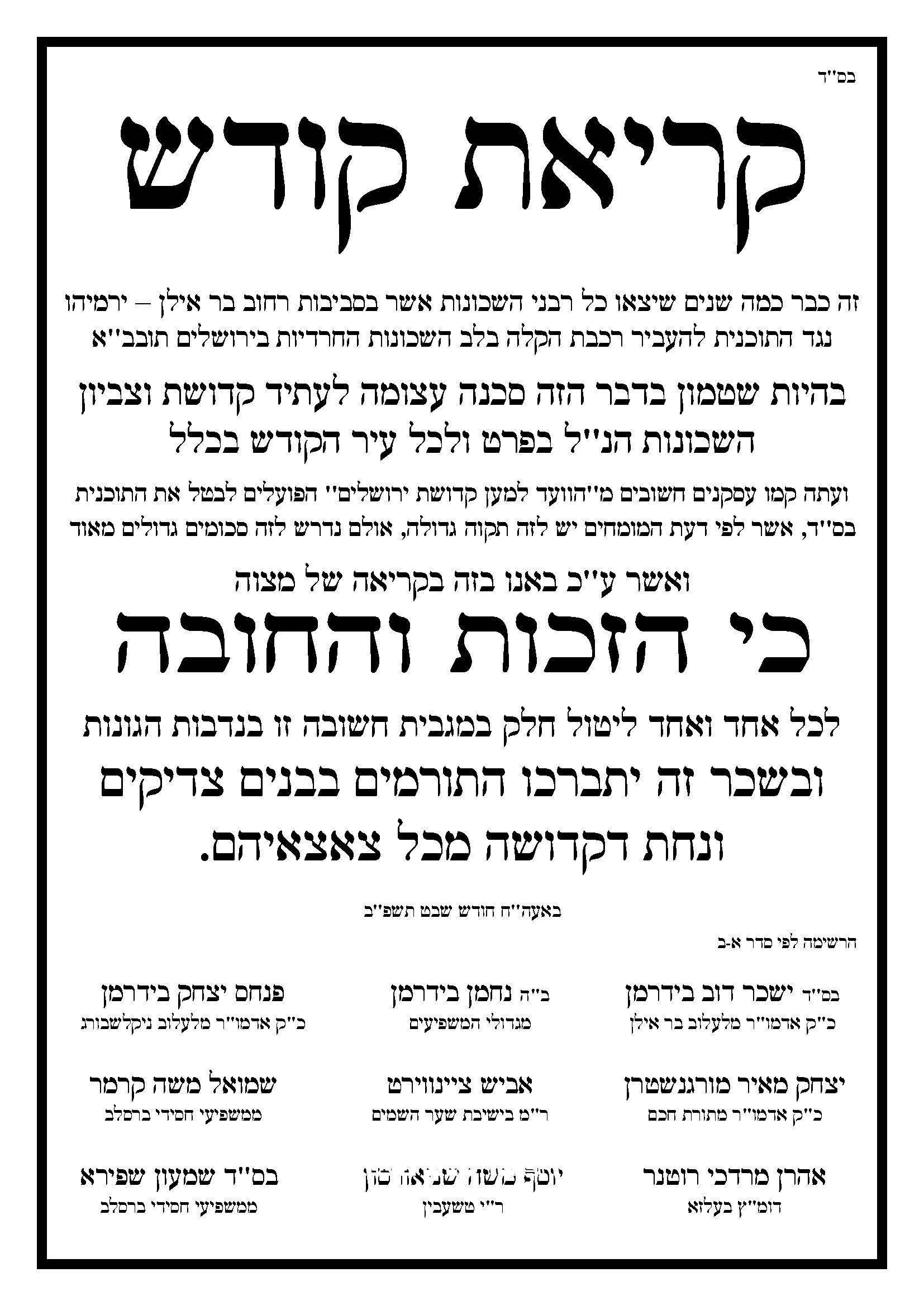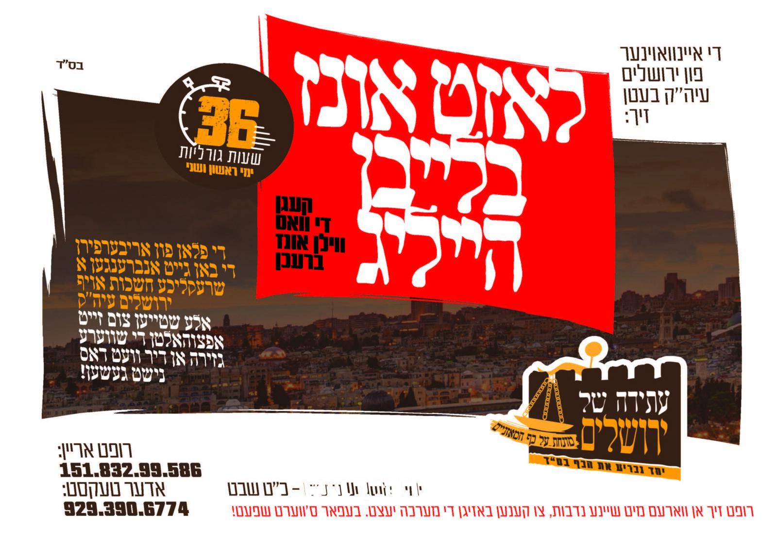 זה הזמן לפעול ולהפעיל, בהוראת מרנן ורבנן גדולי ישראל שליט"א, למען הצלחת המערכה והכרעת עתיד קדושתה של ירושלים!