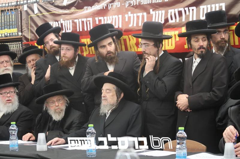 בכינוס החירום השתתפו: הגה"צ רבי יעקב מאיר שכטער שליט"א. האדמו"רים מסלאנים; טשערנוביל; רחמסטריווקא; לעלוב; בוהוש; סאסוב; זוועהיל; ויז׳ניץ בי"ש; פינסק קרלין; סקולען; ביאלא ב"ב; גאב"ד חוג חתם סופר; המשפיע הרה"צ רבי אלימלך בידרמן; הרה"צ רבי צבי מאיר זילברברג; הרה"צ רבי יצחק מאיר מורגנשטרן מ'תורת חכם'; המקובל רבי גמליאל רבינוביץ, המקובל רבי אברהם אביש ציינווירט; רה"י הג"ר מאיר הייזלר. מרנן ורבנן גדולי מנהיגי עדות המזרח שהשתתפו: רה"י הגר"מ צדקה; הגר"י תופיק אביעזרי; הגרב"צ מוצפי; המקובל הגר"ב שמואלי; הגר"צ בוארון; הגאון הרב יורם חדד משגיח ישיבת כסא רחמים והגר"ש טולידנו ר"י תפארת יעקב. ועוד.