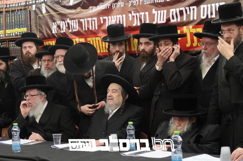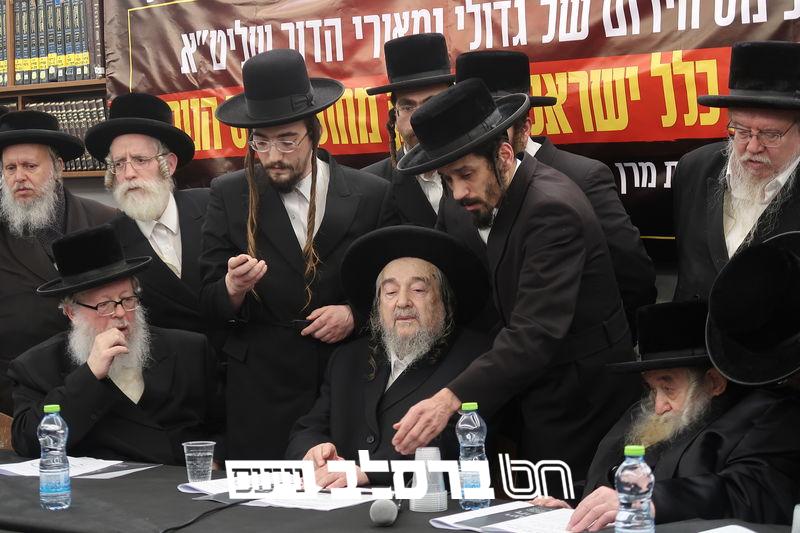 בעוד הדיונים על חוק הגיוס הולכים ומתקדמים בוועדת חוץ וביטחון, נערך כינוס חירום של מרנן ורבנן גדולי ישראל בראשות האדמו"רים והמשפיעים החסידיים אמש (ראשון) באולם בית המדרש ויז’ניץ ברחוב נחמיה בירושלים. הכינוס נערך בראשות פאר עדתנו הגה"צ רבי יעקב מאיר שכטער שליט"א וראש הישיבה חכם רבי משה צדקה שליט"א, ובסיומה יצאה קריאה והצהרה נגד הפשרות בחוק הגיוס המקודם בכנסת.