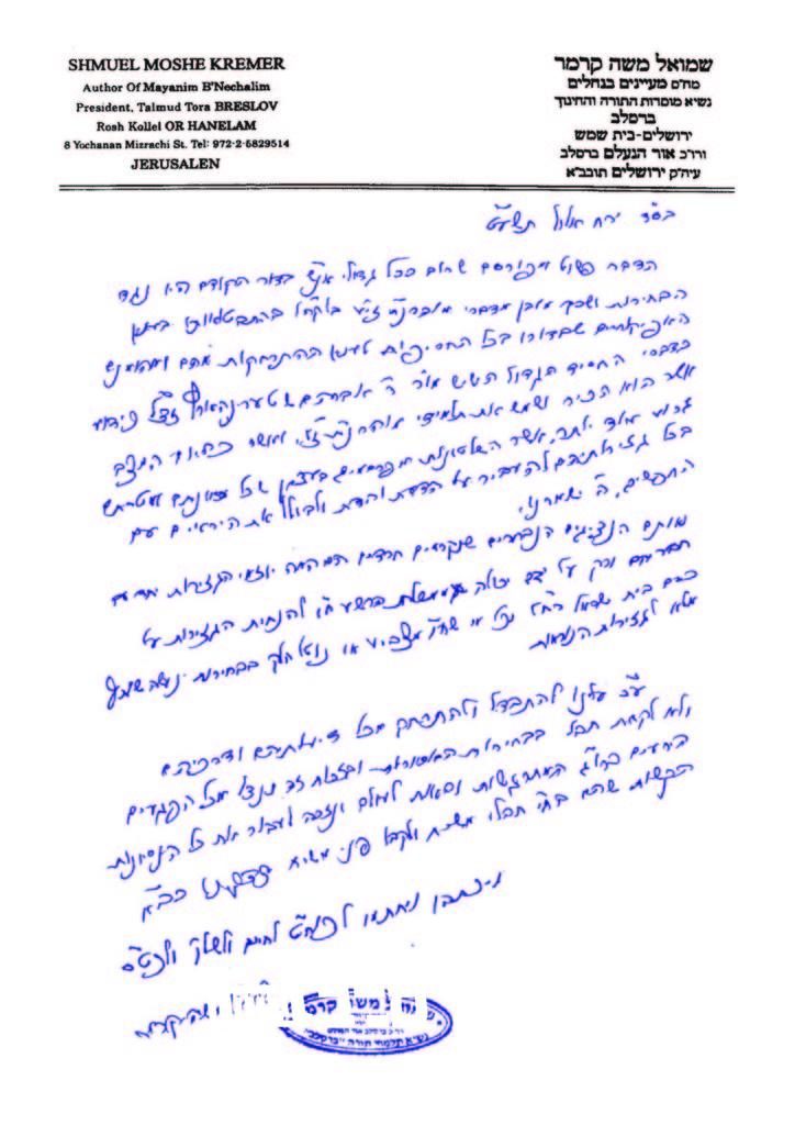 דעת הרבנים הגה"צ גדולי זקני ברסלב ומכתבי קריאות קודש וברכות מיוחדות לנמנעים מלהצביע לבחירות לכנסת