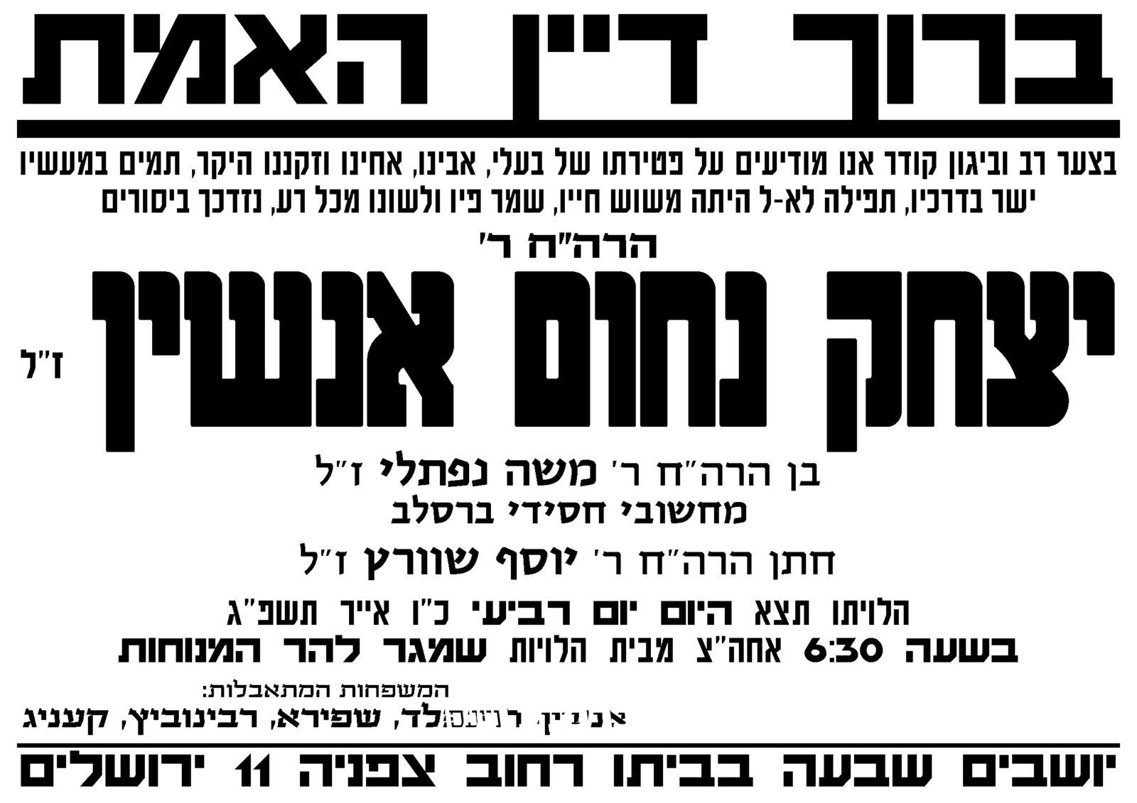 המנוח רבי יצחק נחום אנשין זצ"ל