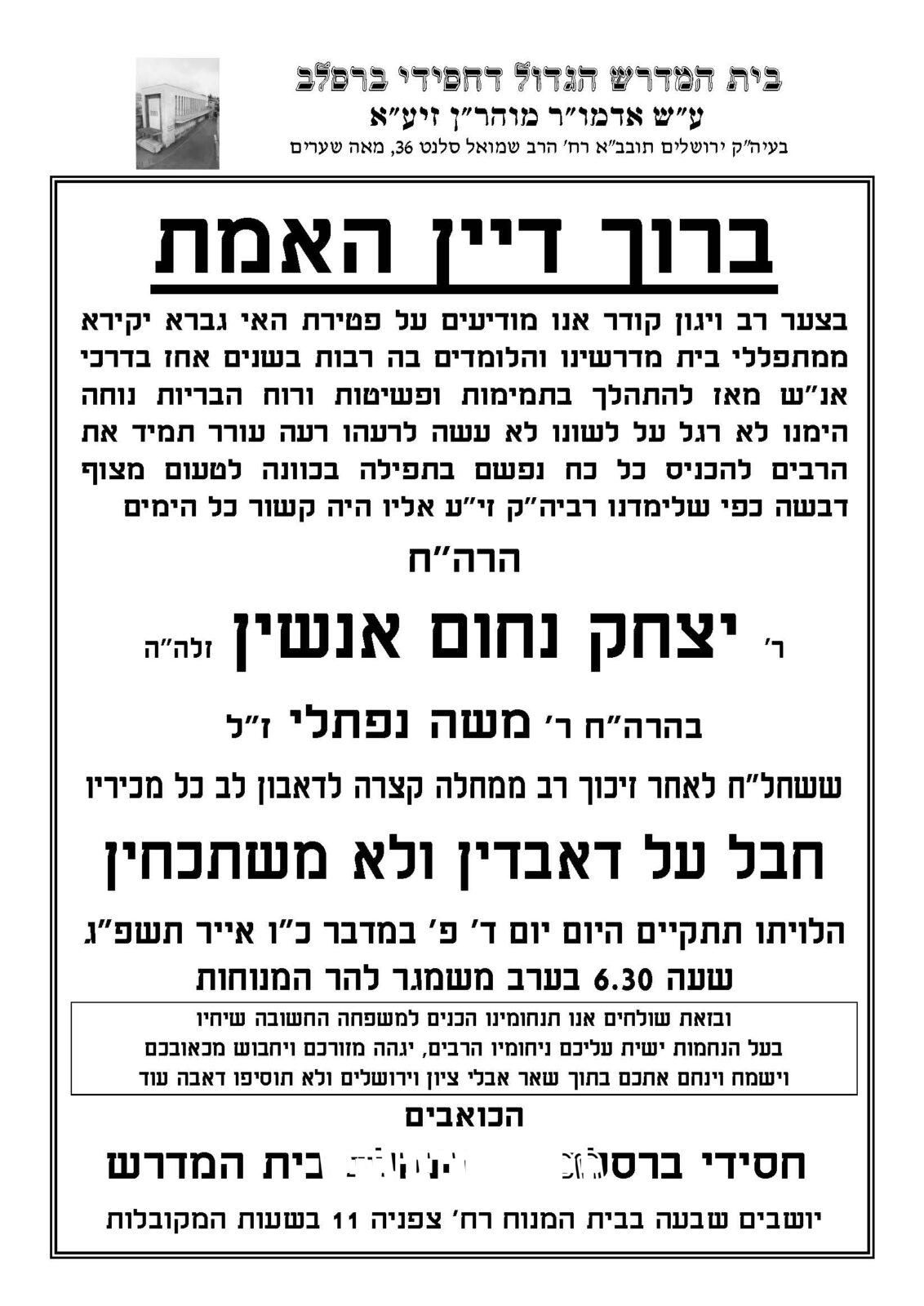 ברוך דיין האמת חדשות ברסלב רבי יצחק נחום אנשין רבי משה נפתלי אנשין רבי שמואל מאיר אנשין