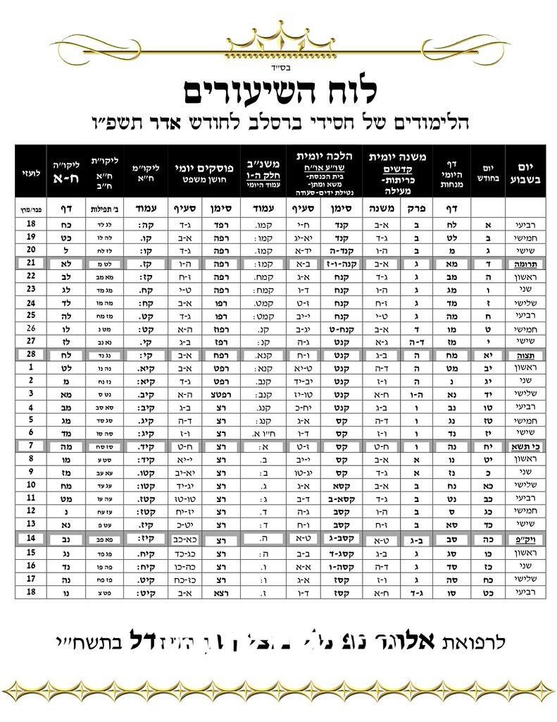לוח הלימודים המקובלים בחצרות אנ"ש חסידי ברסלב – שיעורים לחודש אדר תשפ"ו – לקריאה להורדה ולהדפסה • |☜ הקש כאן |