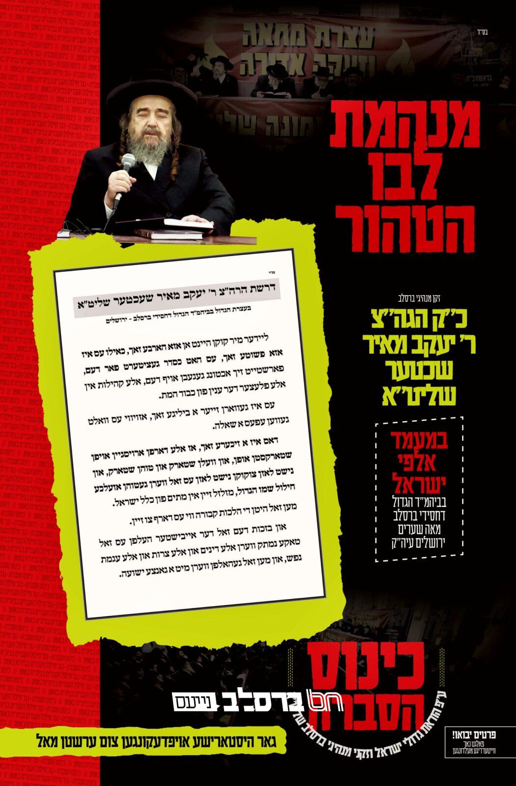 הילולא קדישא • בבית הכנסת הגדול דחסידי ברסלב "אור אברהם" שבשכונת 'עזרת תורה', רחוב גבעת משה 8 ירושלים התקיים מעמדקרא עוד ←