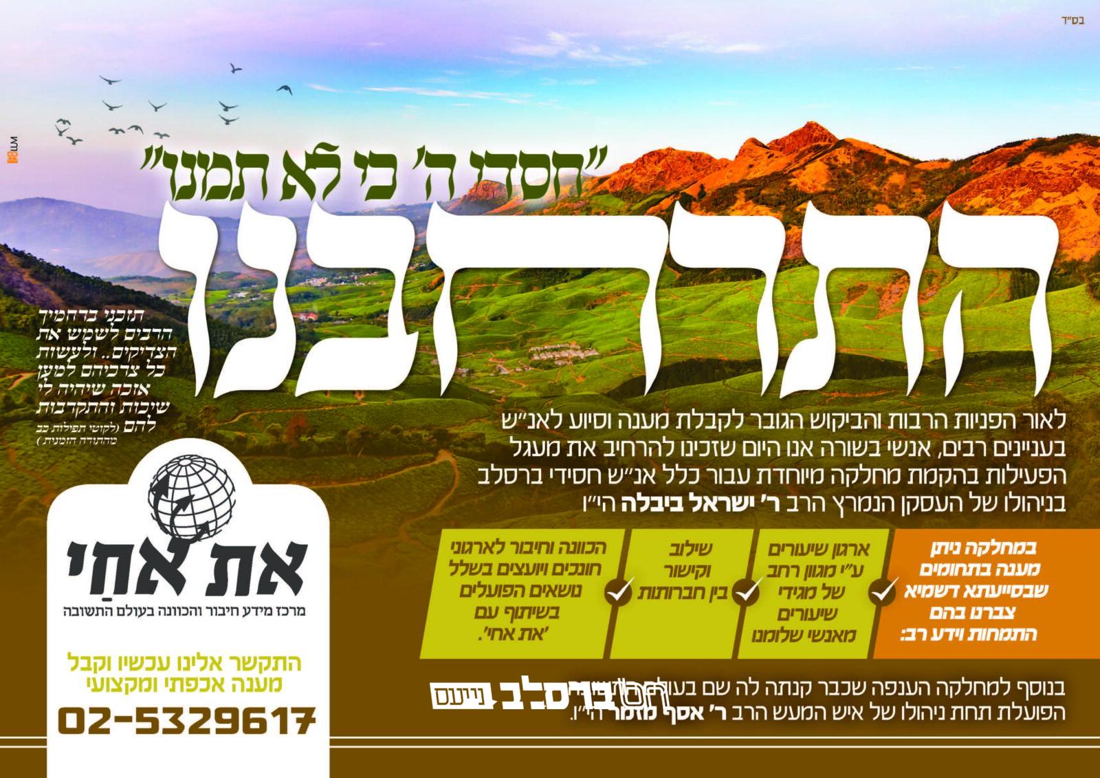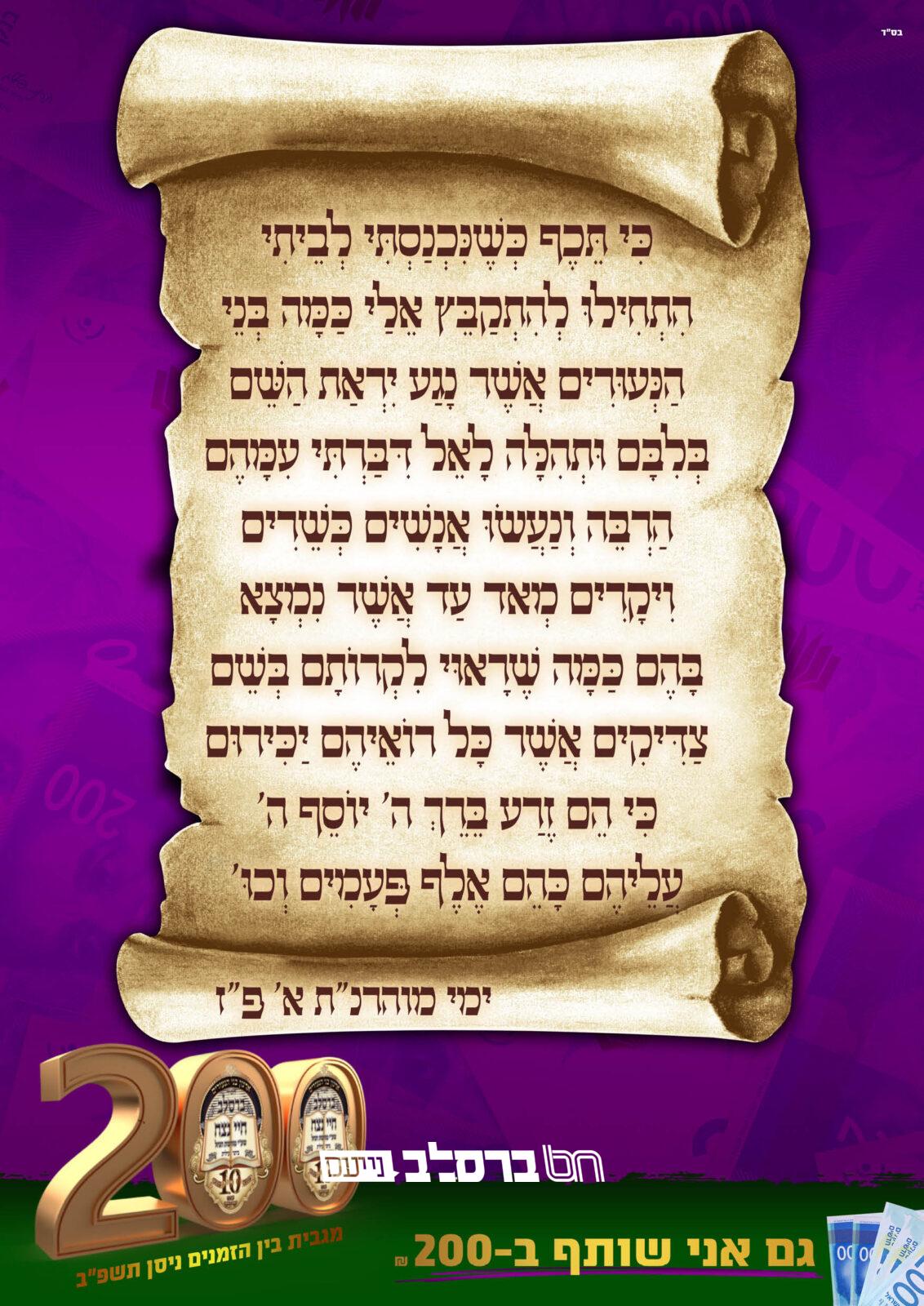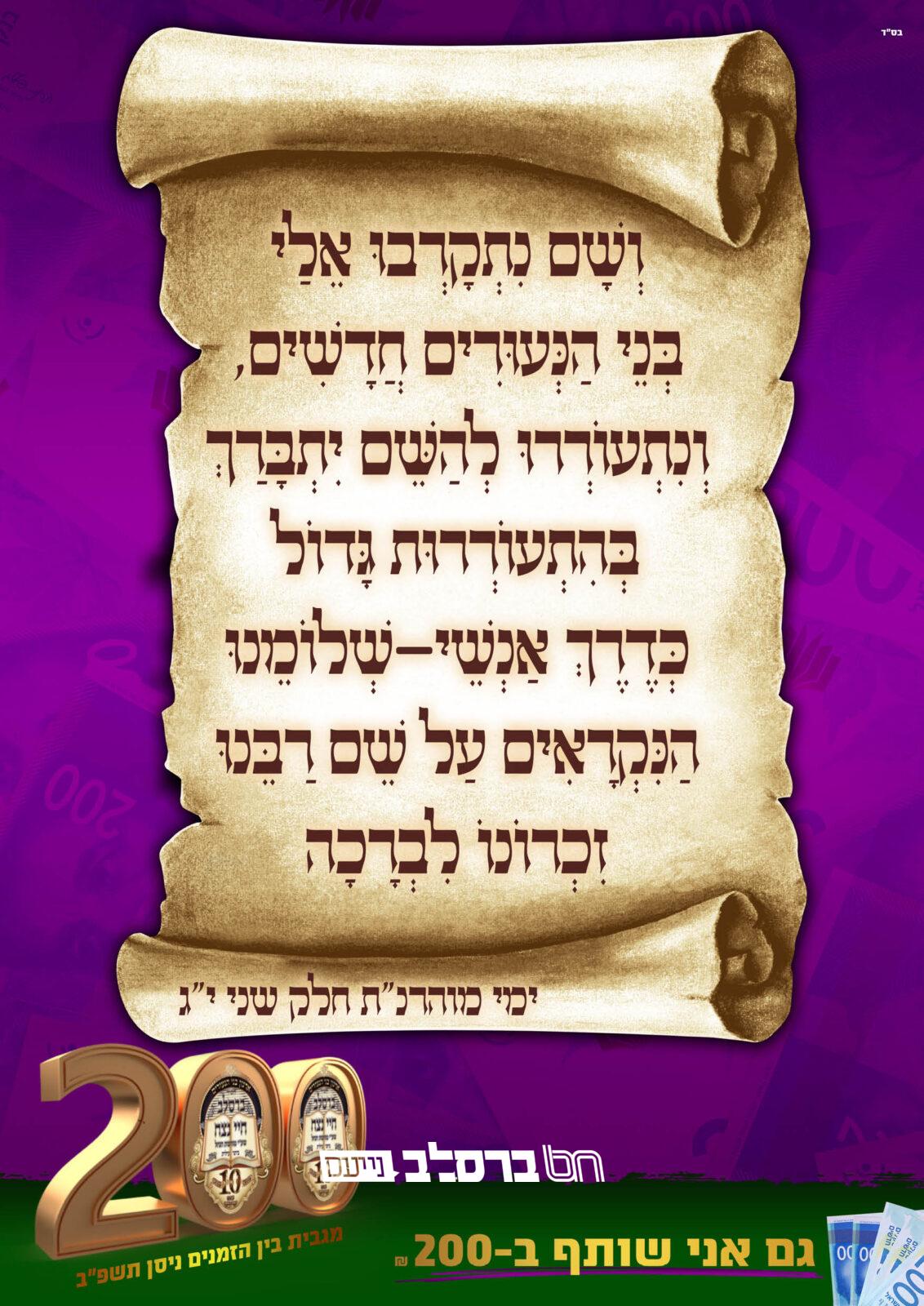 ניתן לשלוח עלונים ומודעות לפרסום ב'ברסלב נייעס'