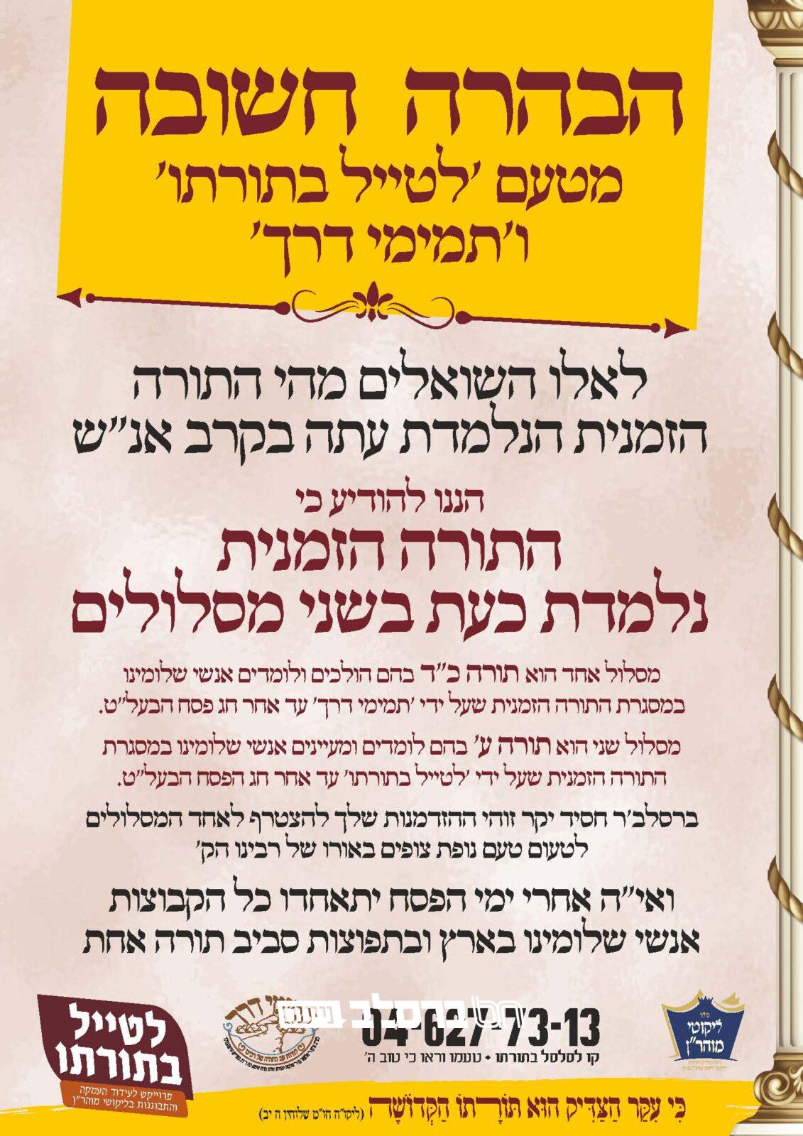 חדשות ברסלב » התורה הזמנית » ארגון 'תמימי דרך' » אירועי 'תמימי דרך' • בשורה משמחת: לקראת סיום התורה הזמנית תורה ז' תניינא…