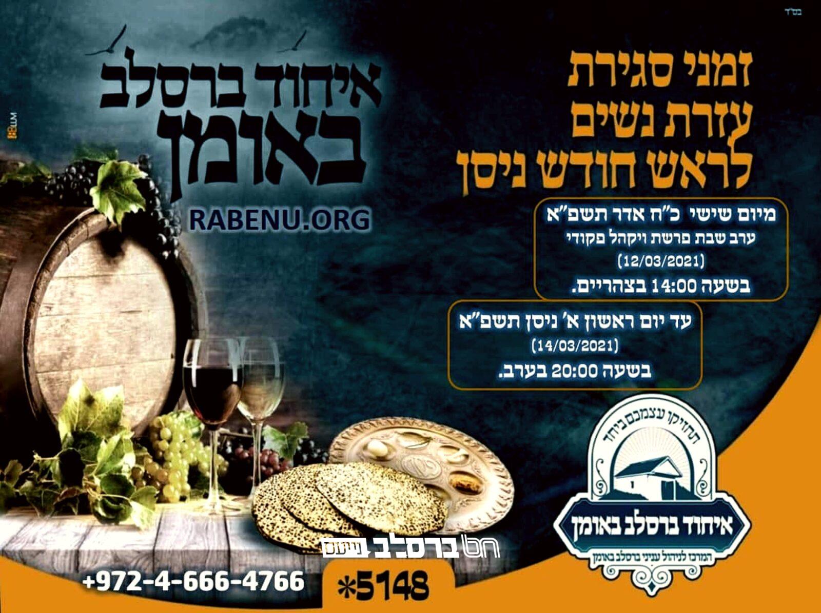 חדשות אומן • לקראת קיבוץ 'ראש חודש ניסן' מפרסמים 'איחוד ברסלב באומן' את זמני סגירת ופתיחת ה'עזרת נשים' בציון רבינוקרא עוד ←