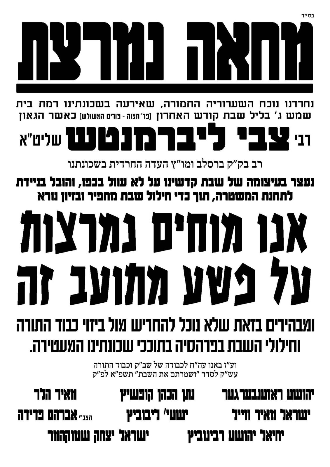 וְשָׁמְרוּ בְנֵי יִשְׂרָאֵל אֶת הַשַּׁבָּת • זעזוע בבית שמש: משטרת בית שמש עצרה בעיצומו של יום השבת את הגאון רביקרא עוד ←