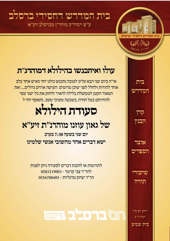 כלל חדשות השבוע בחצרות ברסלב: כותרות השבוע ב'ברסלב נייעס' » עלוני ברסלב המובילים » לוח המודעות של ברסלב » לוחות