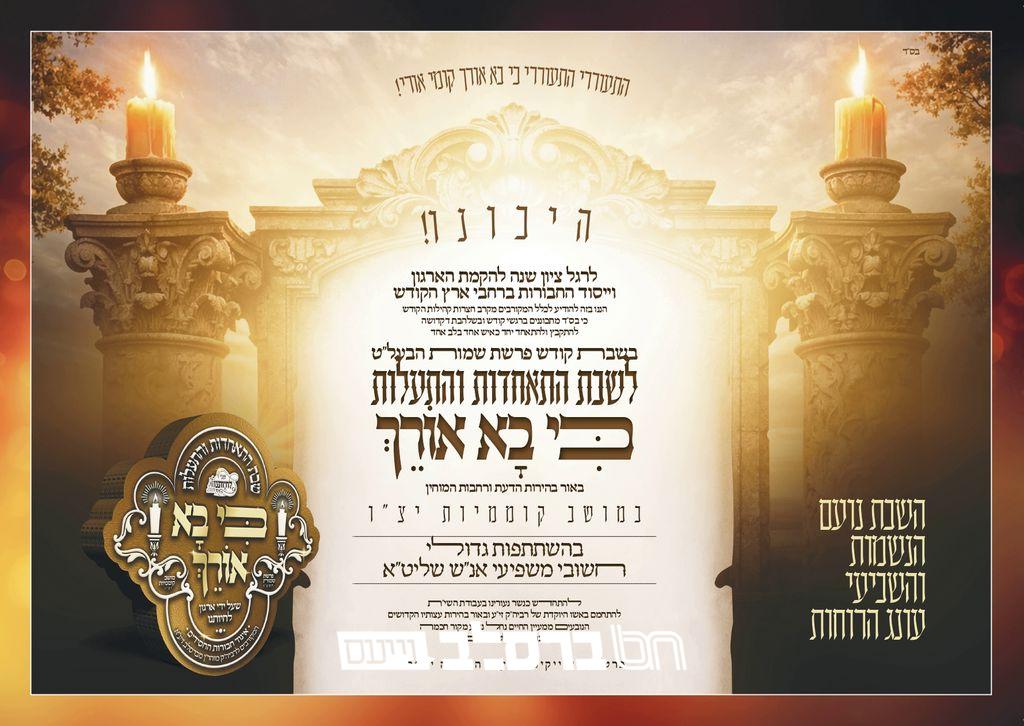 חדשות ברסלב » ארגון 'לחיותנו' » שבת התאחדות • ארגון 'לחיותנו' נערך לשבת התאחדות היסטורי בסימן "כִּי בָא אורֵך" שיערך בשבת פרשת שמות | הפרטים: