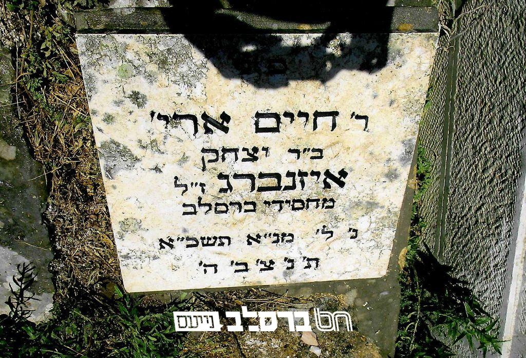 על המצבה נכתב : פ"נ ר' חיים ארי' ב"ר יצחק איזנברג ז"ל מחסידי ברסלב נ' ל' מנ"א תשכ"א ת'נ'צ'ב'ה.