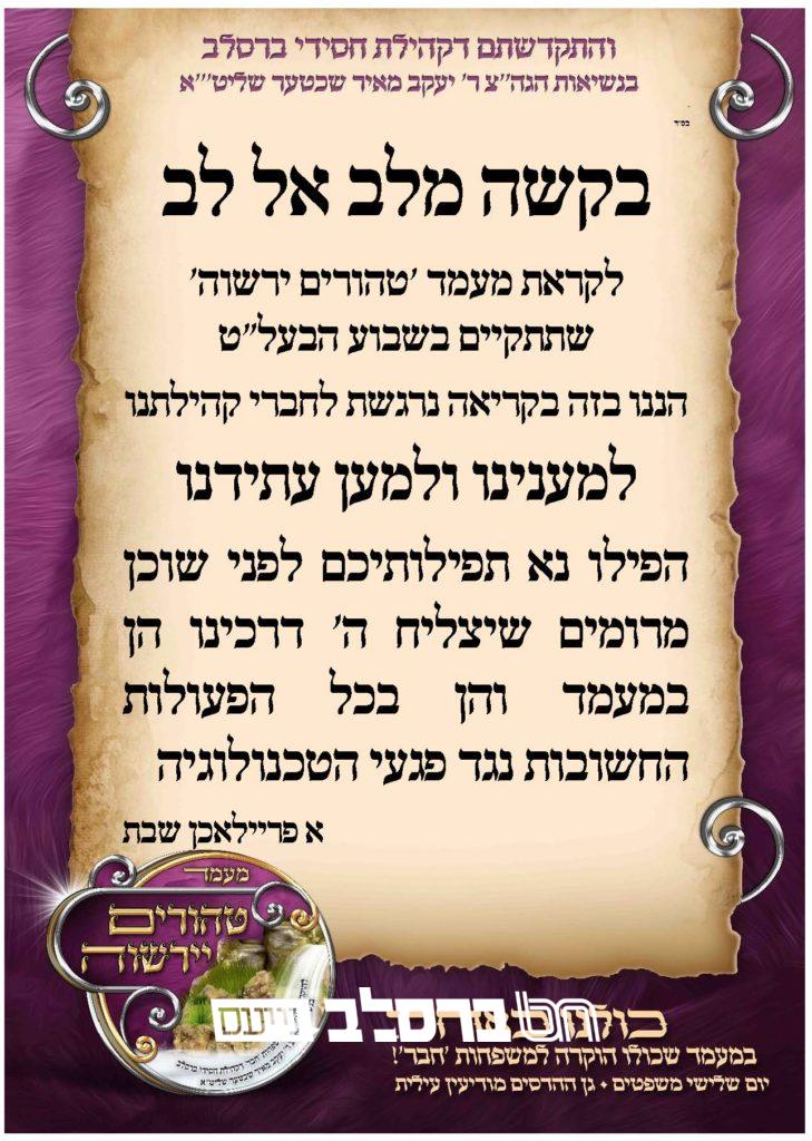 ברסלב הרי"מ חדשות כינוסים מעמד טהורים ירשוה מעמדים פגעי הטכנלוגיה קהילת חסידי ברסלב רבי יעקב מאיר