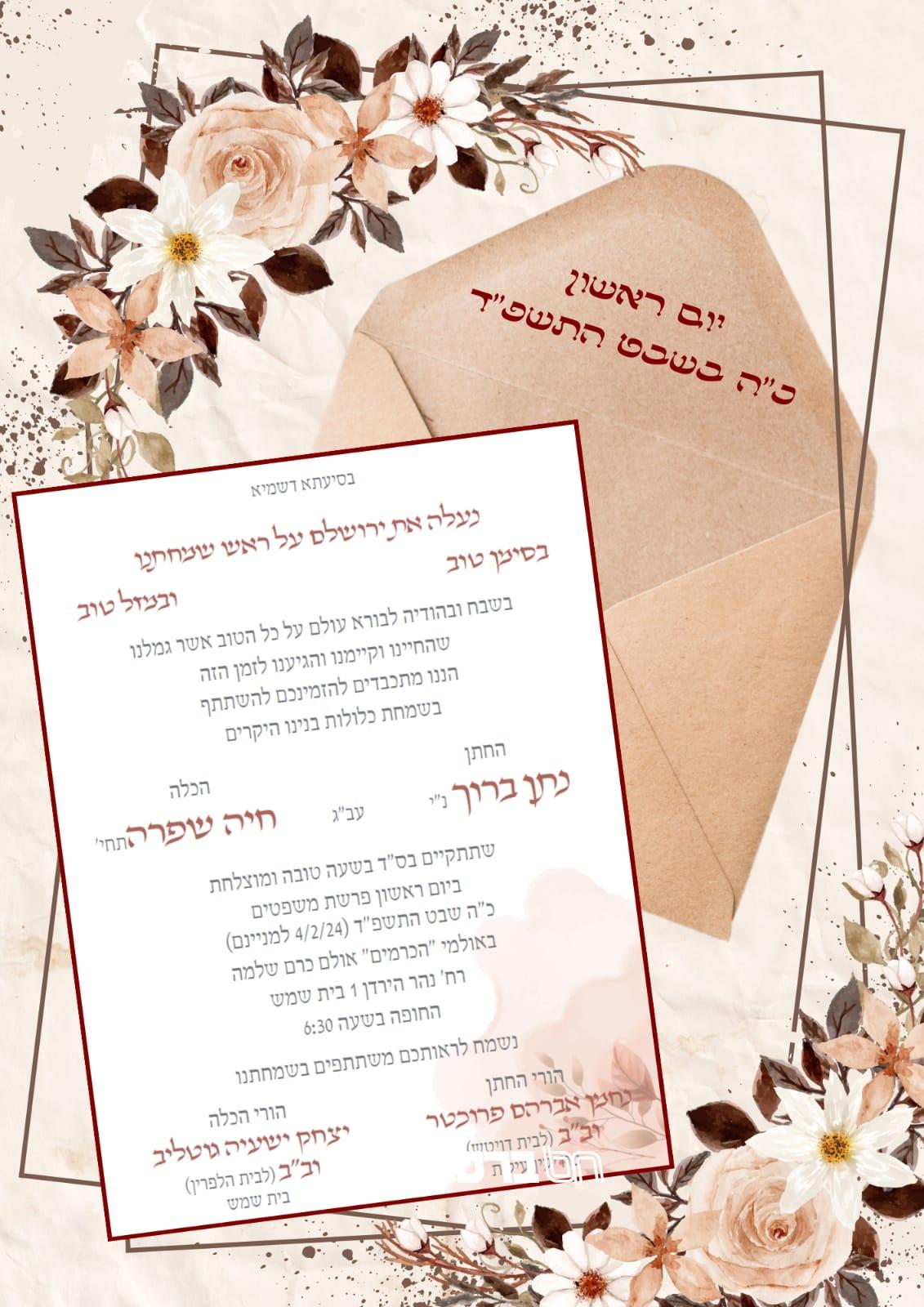 שמחת החתונה מתקיימת הערב (ראשון), כ"ה שבט, באולמי 'הכרמים' אולם 'כרם שלמה' רחוב נהר הירדן 1 בית שמש.