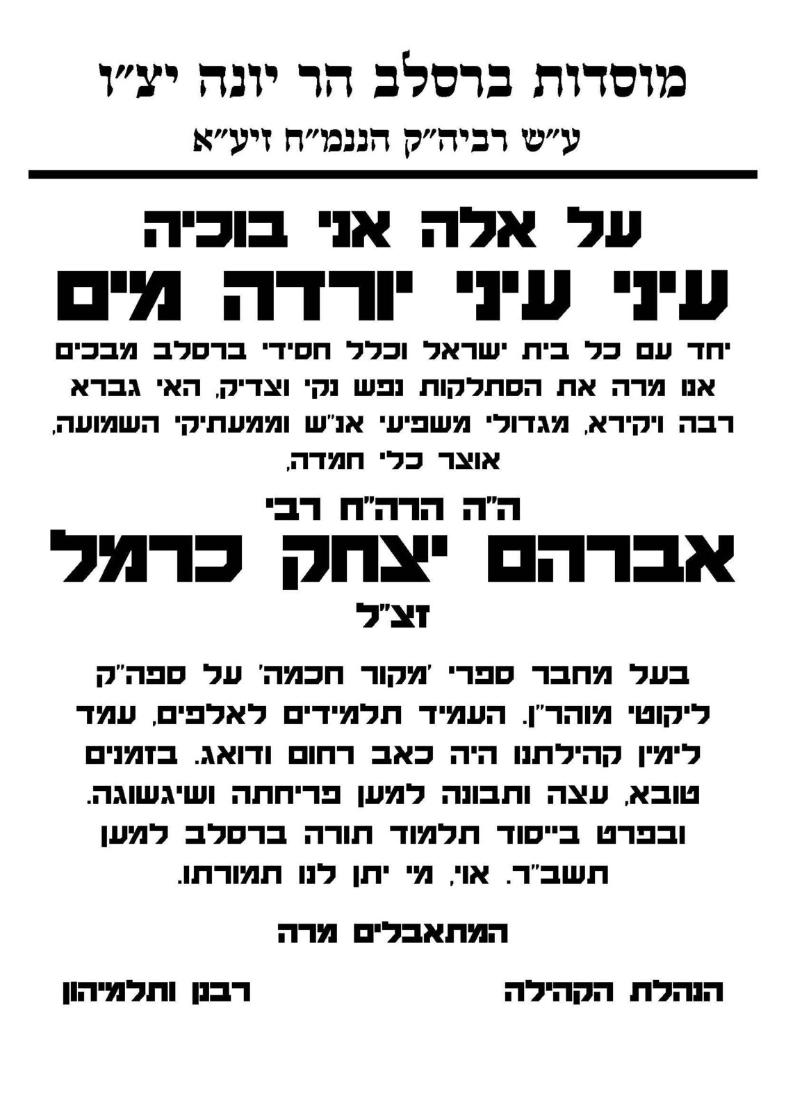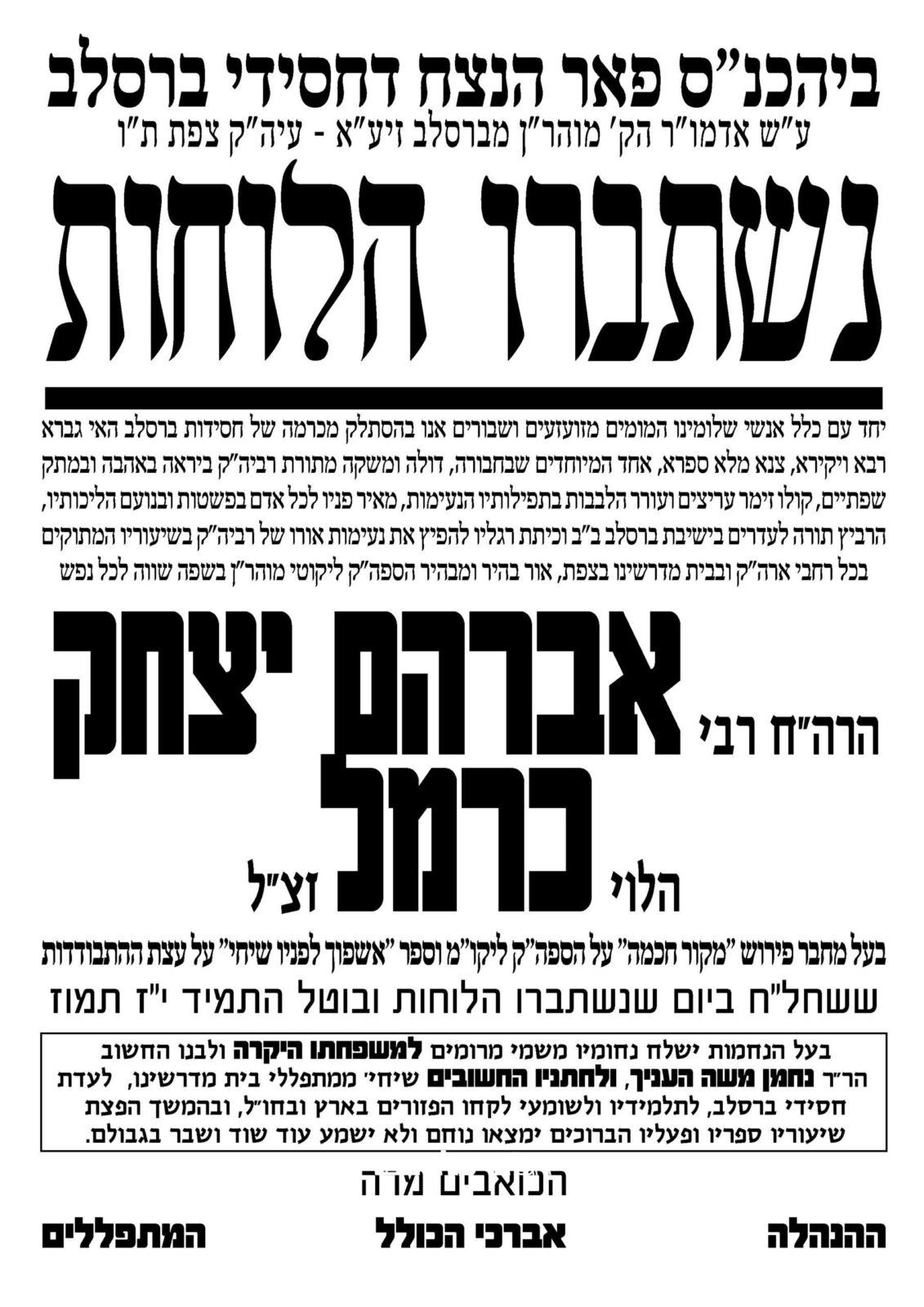 חדשות ברסלב » עצרת מספד » ברסלבע'ר שוהל » רבי נתן ליברמנש » • בתום השלושים להסתלקותו של האי חסידא ופרישא איש…