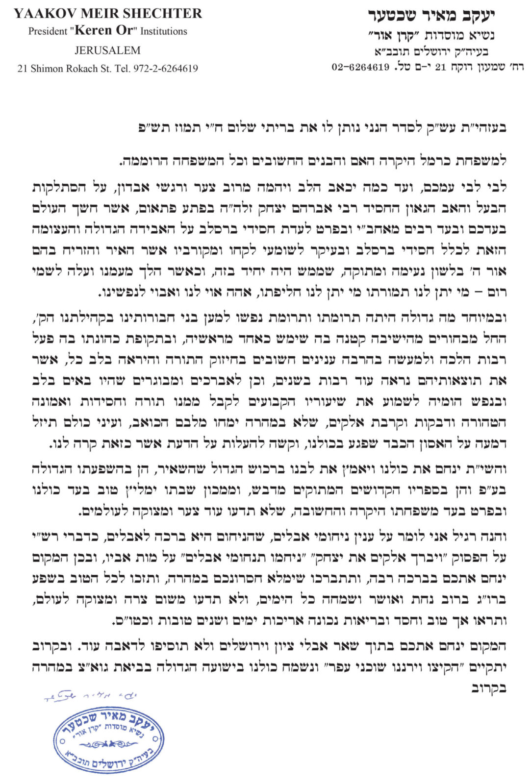 הגה"צ רבי יעקב מאיר שכטער שליט"א שלח מכתב תנחומים מיוחד לבני משפחת הגה"ח רבי אברהם יצחק כרמל זצ"ל: בעזהי"ת עש"ק קרא עוד ←