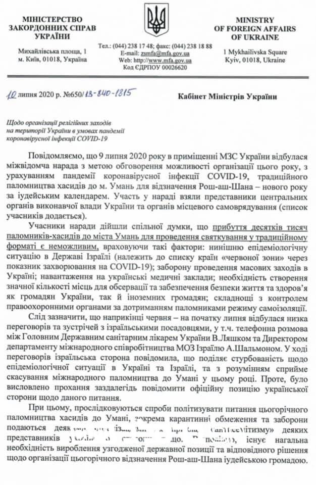 מסמך שפורסם היום מטעם משרד החוץ האוקראיני נאמר: הננו בזה להודיע, שבתאריך תשיעי לחודש יולי 2020, התקיימה ישיבה בין מחלקתית קרא עוד ←