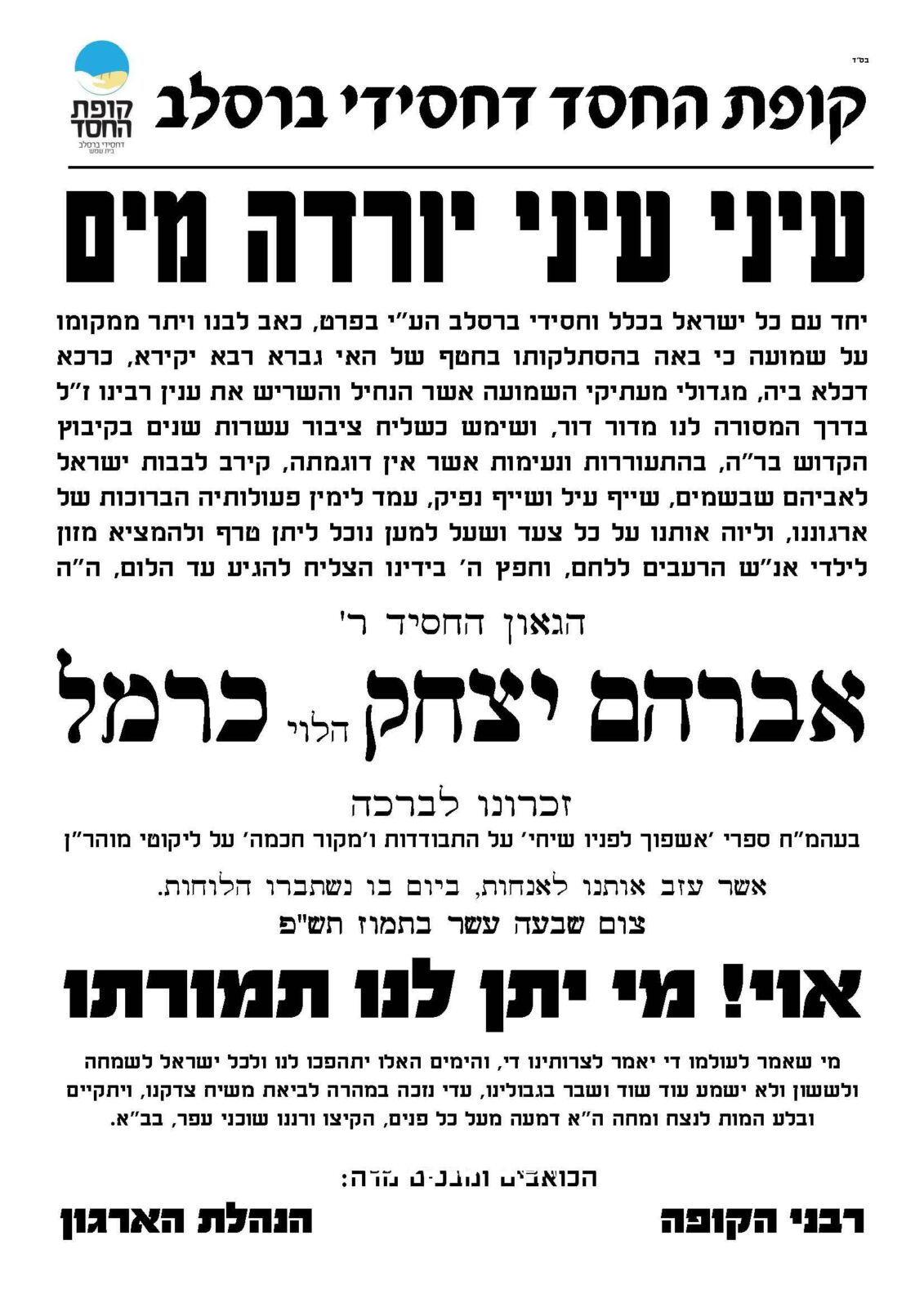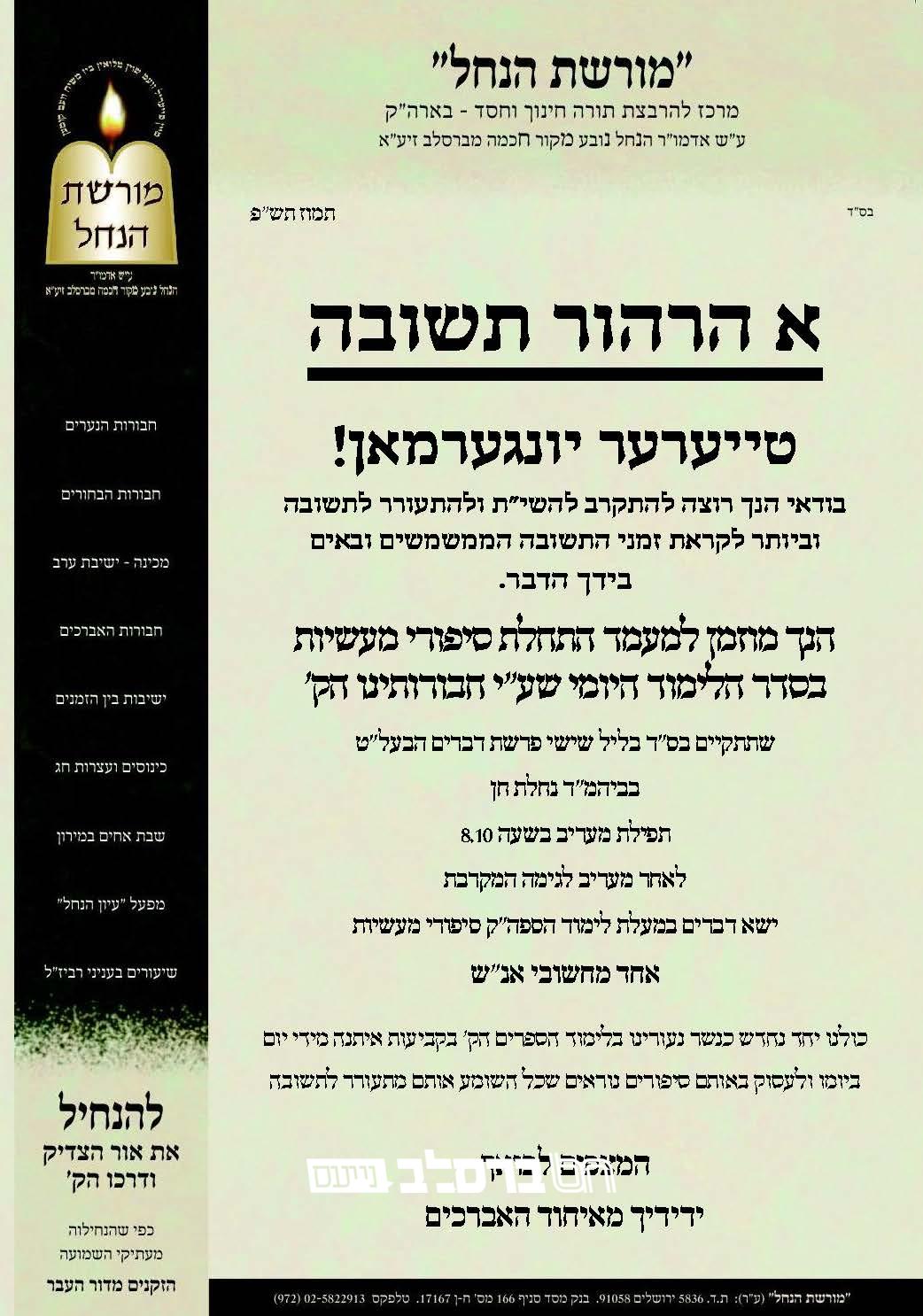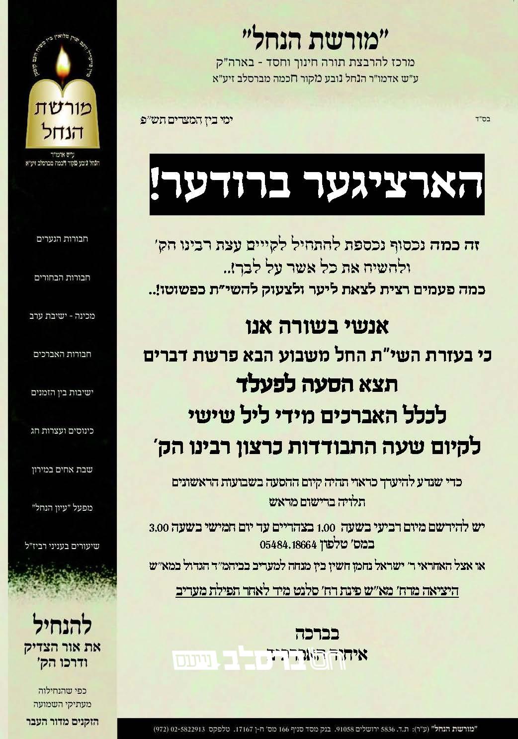 ניתן לשלוח עלונים ומודעות לפרסום ב'ברסלב נייעס'