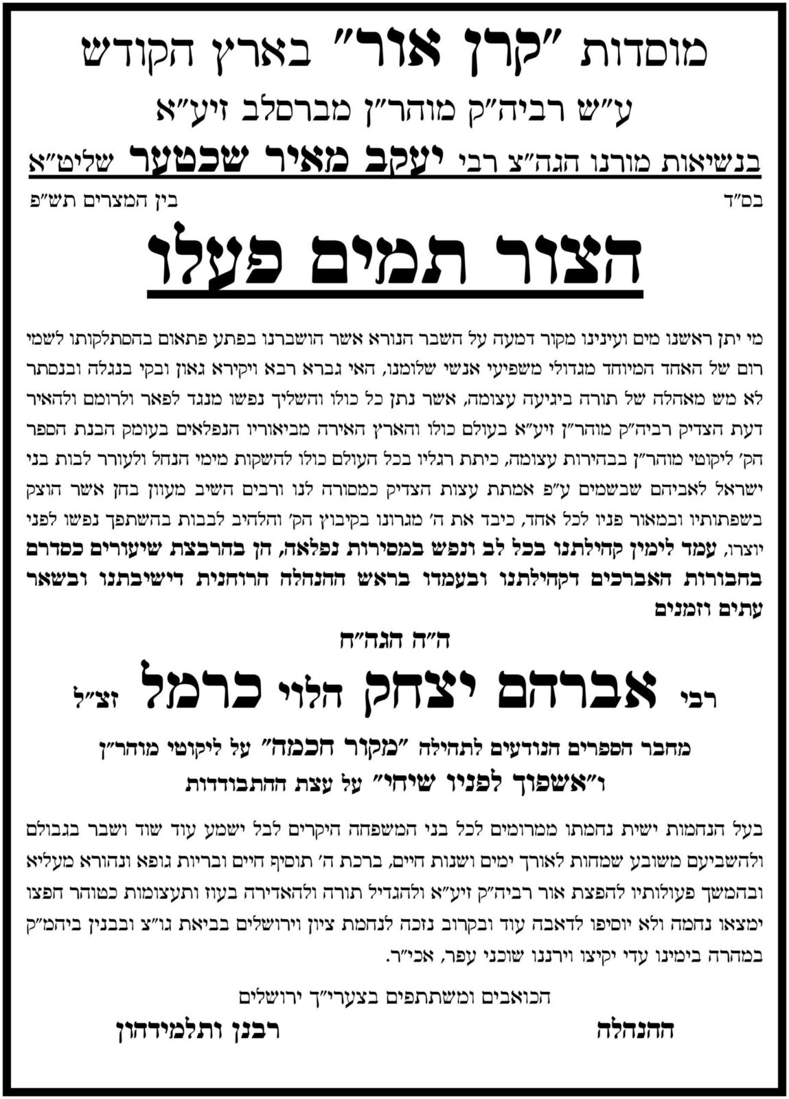 הודעת המוציא לאור: אשרי המדפיס כמה גליונות לזכות את הרבים אפשר לתרום לטועמיה כל סכום שהוא בנדרים פלוס או בקישור זה:
