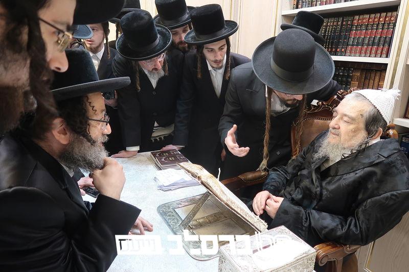 כ"ק האדמו"ר מקרעטשניף סיגעט שליט"א עלה למעון קדשו של פאר עדתנו ופאר הדור הגה"צ רבי יעקב מאיר שכטער שליט"א לרגל הכתרתו לכתר האדמור"ת, לאחר הסתלקות אביו זצ"ל | קרדיט: מ.א. נוימן.