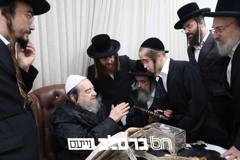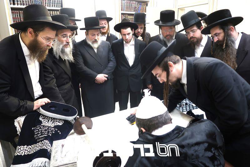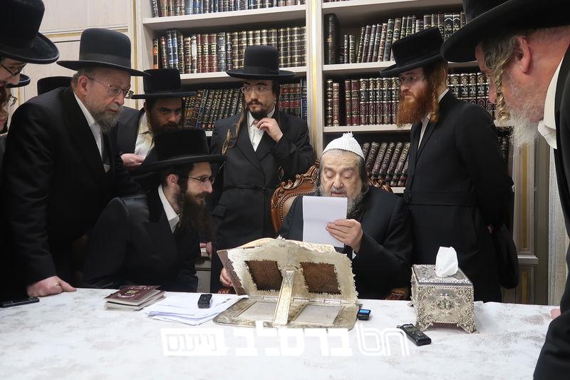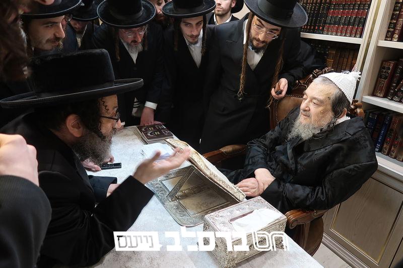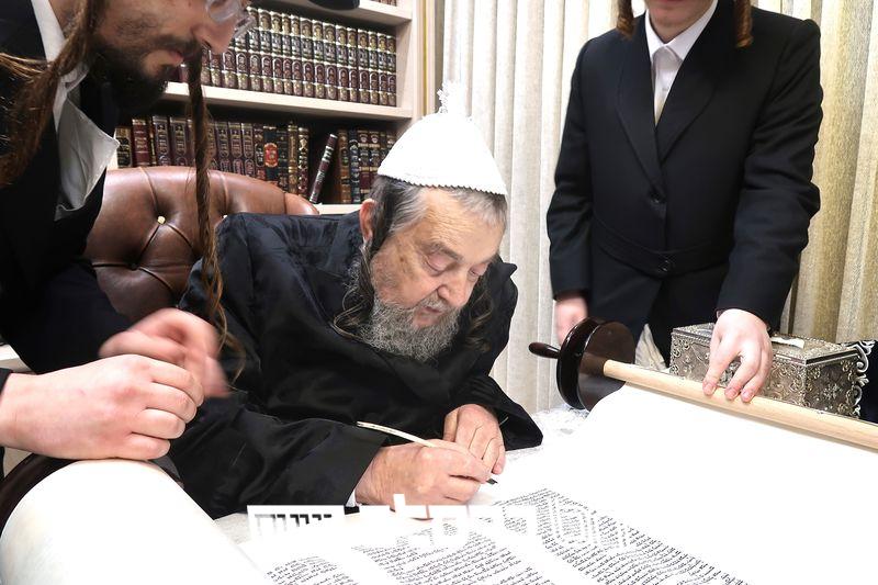 מעמד סיום כתיבת אותיות בספר תורה מהודר עבור ישיבת 'שער המלך' במעונו של פאר עדתנו ופאר הדור הגה"צ רבי יעקב מאיר שכטער שליט"א.