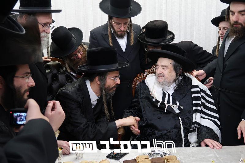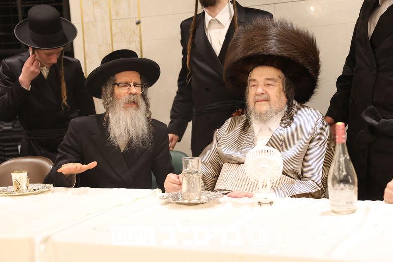 הגאון רבי משה פריעדמאן שליט"א דומ"ץ סאטמאר בארא פארק ארה"ב, וכ"ק אדמו"ר מיערוסלוב שליט"א בשמחת ברית במעון קדשו של פאר עדתנו ופאר הדור הגה"צ רבי יעקב מאיר שכטער שליט"א | קרעדיט יחיאל רייכמאן.