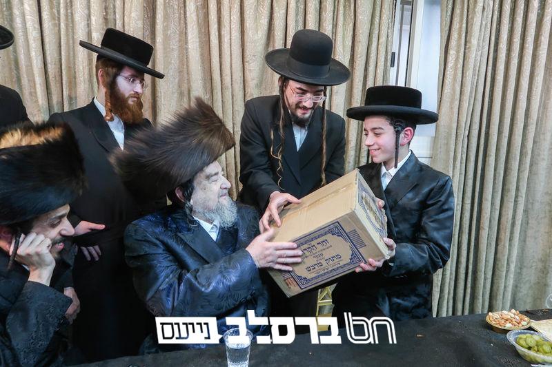 שמחת הבר מצוה לנין פאר עדתנו ופאר הדור הגה"צ רבי יעקב מאיר שכטער שליט"א, בחור הבר מצוה בן לנכדו חביבו הרה"ג ר' יוסף דוד שכטער שליט"א, בהשתתפות המקובל הגה"צ רבי אביש ציינווירט שליט"א והמשפיע הגה"צ רבי צבי מאיר זילבערבערג שליט"א, והגאון רבי עקיבא וואזנער שליט"א | קרעדיט מ. א. נוימאן.