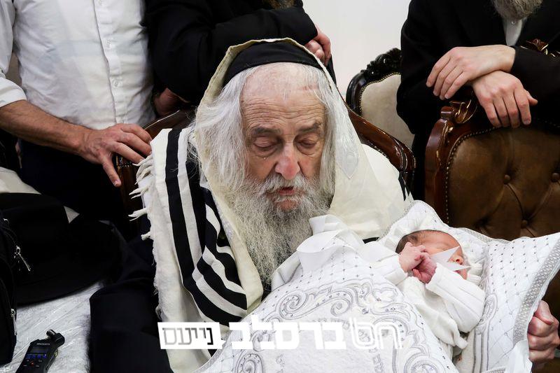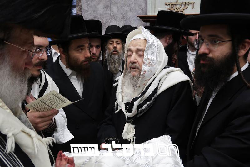 כ"ק מרן האדמו"ר מראחמסטריווקא שליט"א בברית בביתו נאוה קודש של פאר הדתנו ופאר הדור הגה"צ רבי יעקב מאיר שכטער שליט"א | צילום: יחיאל רייכמאן