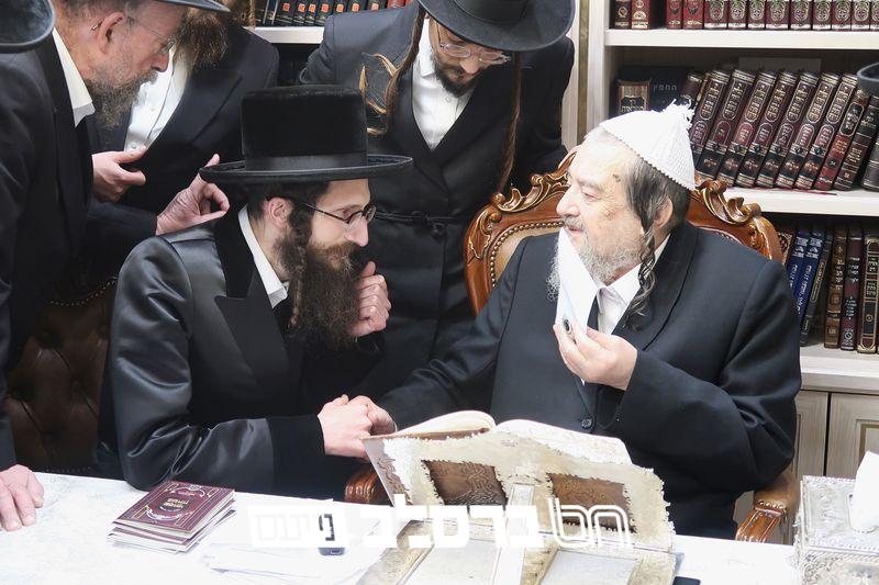 הרה"צ ר' חיים מאיר האגער שליט"א בן כ"ק מרן אדמו"ר מוויזניץ שליט"א במעונו של פאר עדתנו ופאר הדור הגה"צ רבי יעקב מאיר שכטער שליט"א להתברך לקראת שמחת הבר מצוה לבנו | קרעדיט: יחיאל רייכמאן