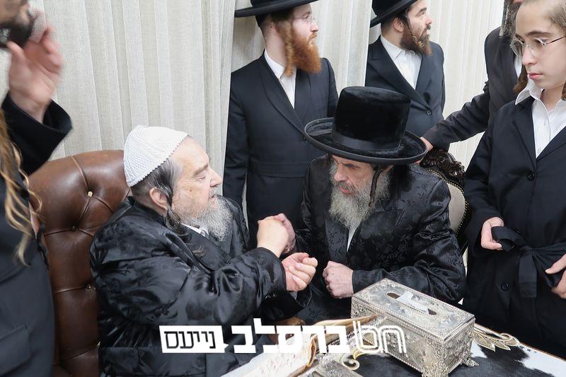פאר עדתנו ופאר הדור הגה"צ רבי יעקב מאיר שכטער שליט"א בניחום אבלים על פטירת כ"ק מרן האדמו'ר מקרעטשניף סיגוט זצ"ל אצל בניו האדמו"רים שליט"א | קרעדיט מ.א. נוימן.