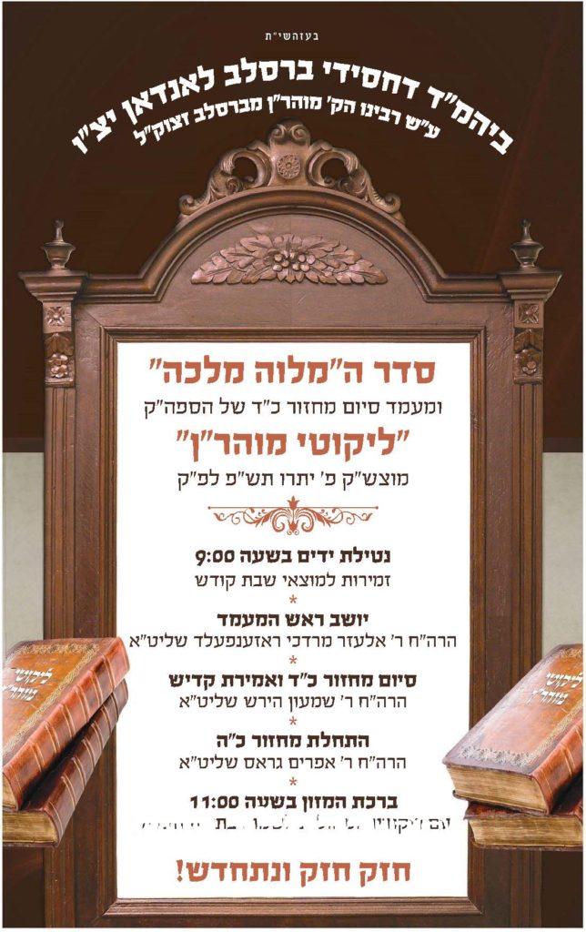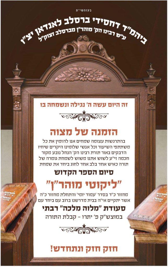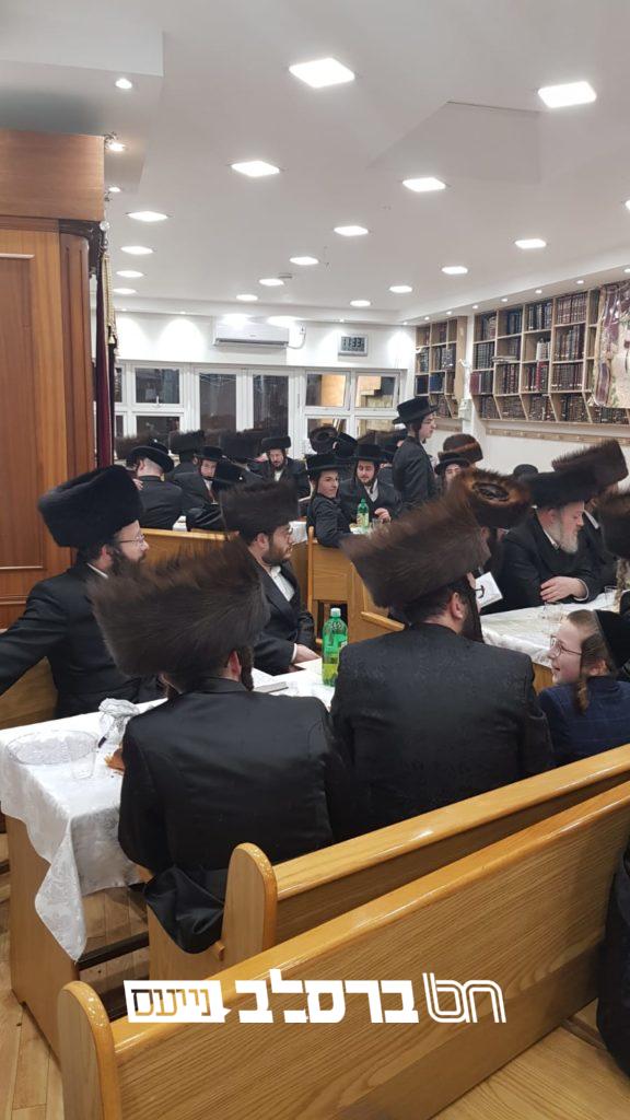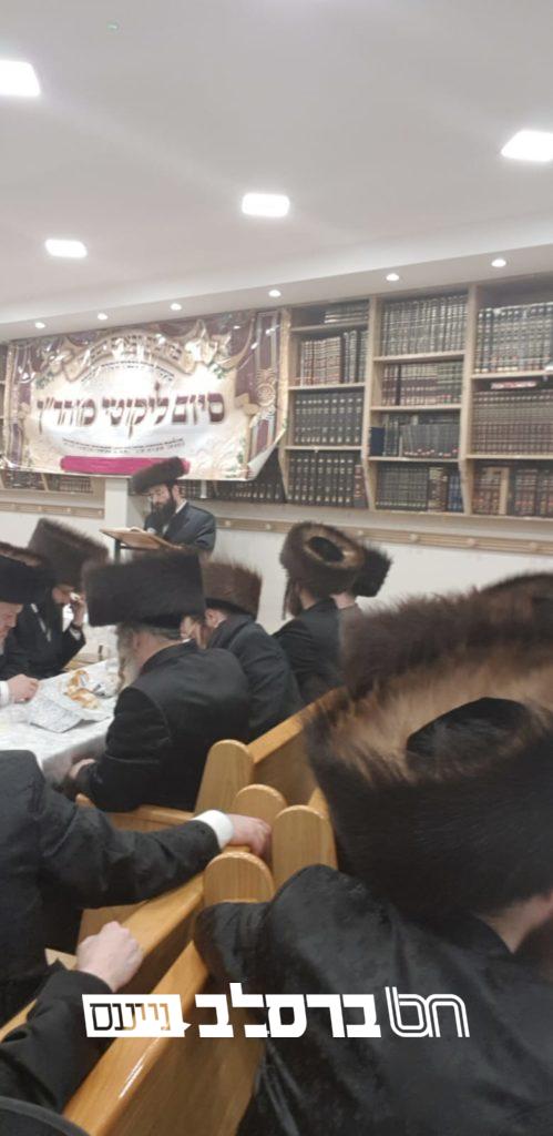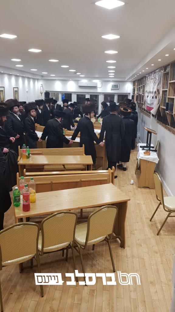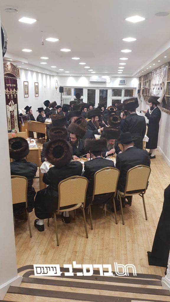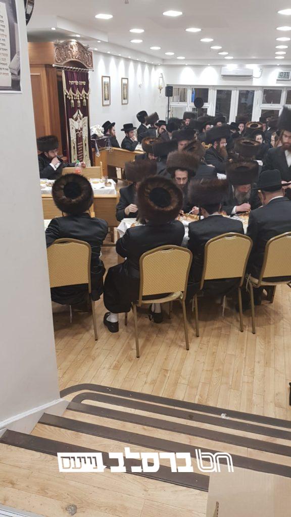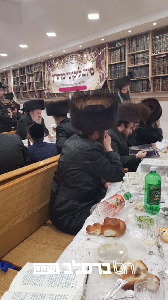 אנשי שלומנו היקרים מתפללי בית המדרש דחסידי ברסלב ברחוב בריידון בלאנדאן. התכנסו במוצאי שב"ק פרשת יתרו – קבלת התורה, למעמד סיום מחזור הכ”ד והתחלת מחזור הכ”ה בספה”ק ליקוטי מוהר”ן – בסדר עמוד היומי.