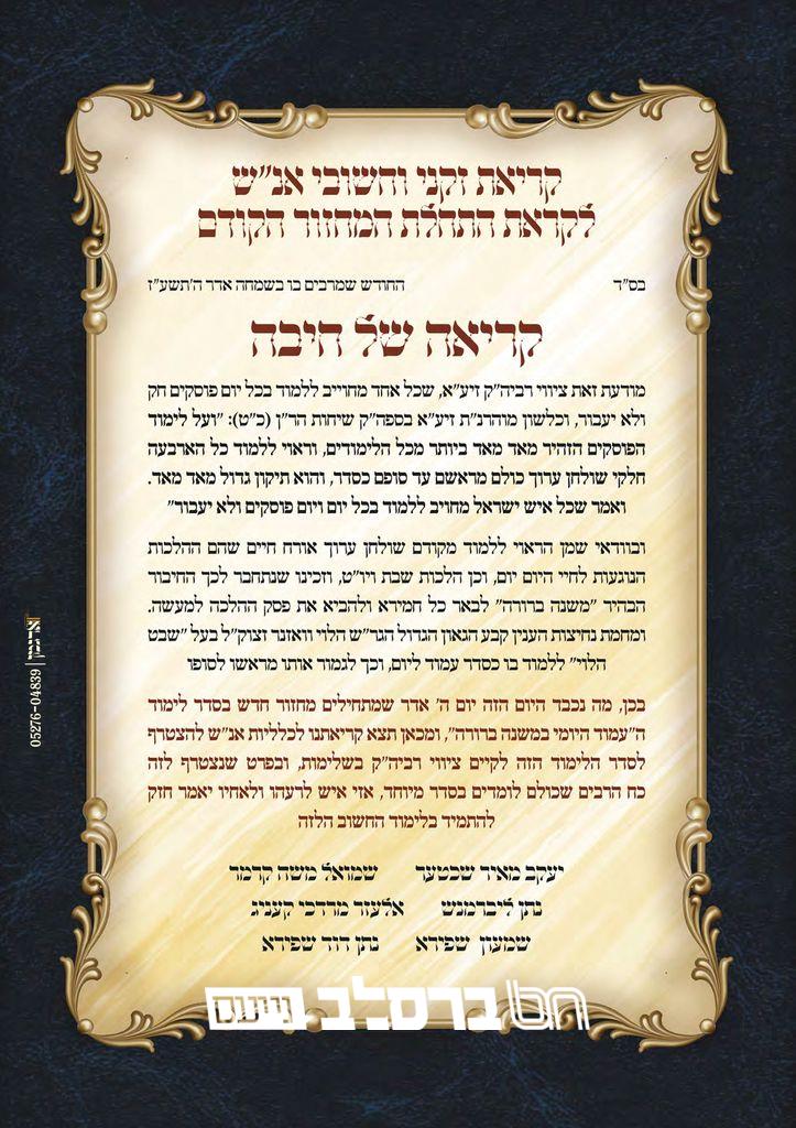 לפני יותר כתשע שנים, כאשר התחילו את המחזור הקודם בסדר העמוד היומי בספר הקדוש ה'משנה ברורה' כפי שנקבע ע"י פוסק הדור הגאון האדיר רבי שמואל הלוי ואזנר זצ"ל, יצאו הרבנים גדולי זקני וחשובי אנ"ש הגה"צ רבי יעקב מאיר שכטער שליט"א, הגה"צ רבי משה קרמר שליט"א, הגה"צ רבי נתן ליברמנש שליט"א, ולהבדיל בין החיים לחיים הגה"צ רבי שמעון שפירא זצ"ל, הגה"צ רבי אלעזר מרדכי קעניג זצ"ל והגה"ח רבי נתן דוד שפירא זצ"ל, בקריאה להצטרף לסדר לימוד מיוחד זה, אשר בכך נזכה להתחזק ככל האפשר שלא יעבור יום מבלי לימוד הלכה. הלימוד התקבל בשמחה רבה בחצרות אנשי שלומינו שהחלו ללמדו מידי יום ביומו חוק ולא יעבור.