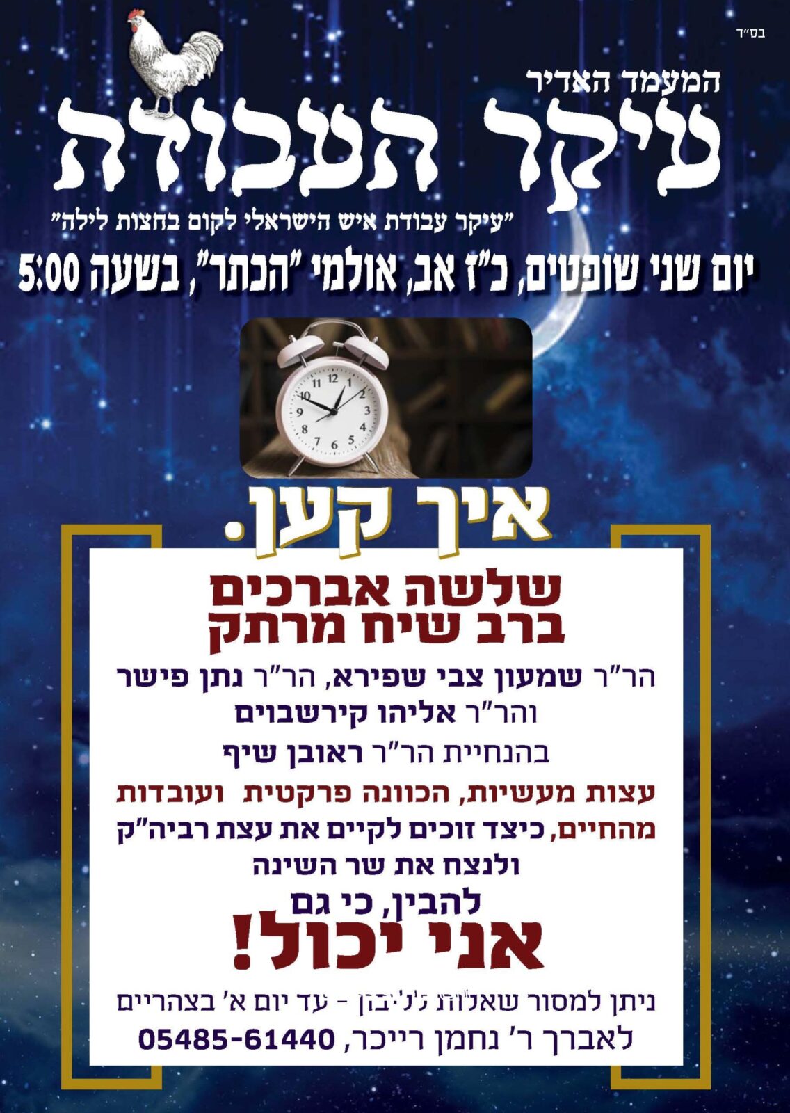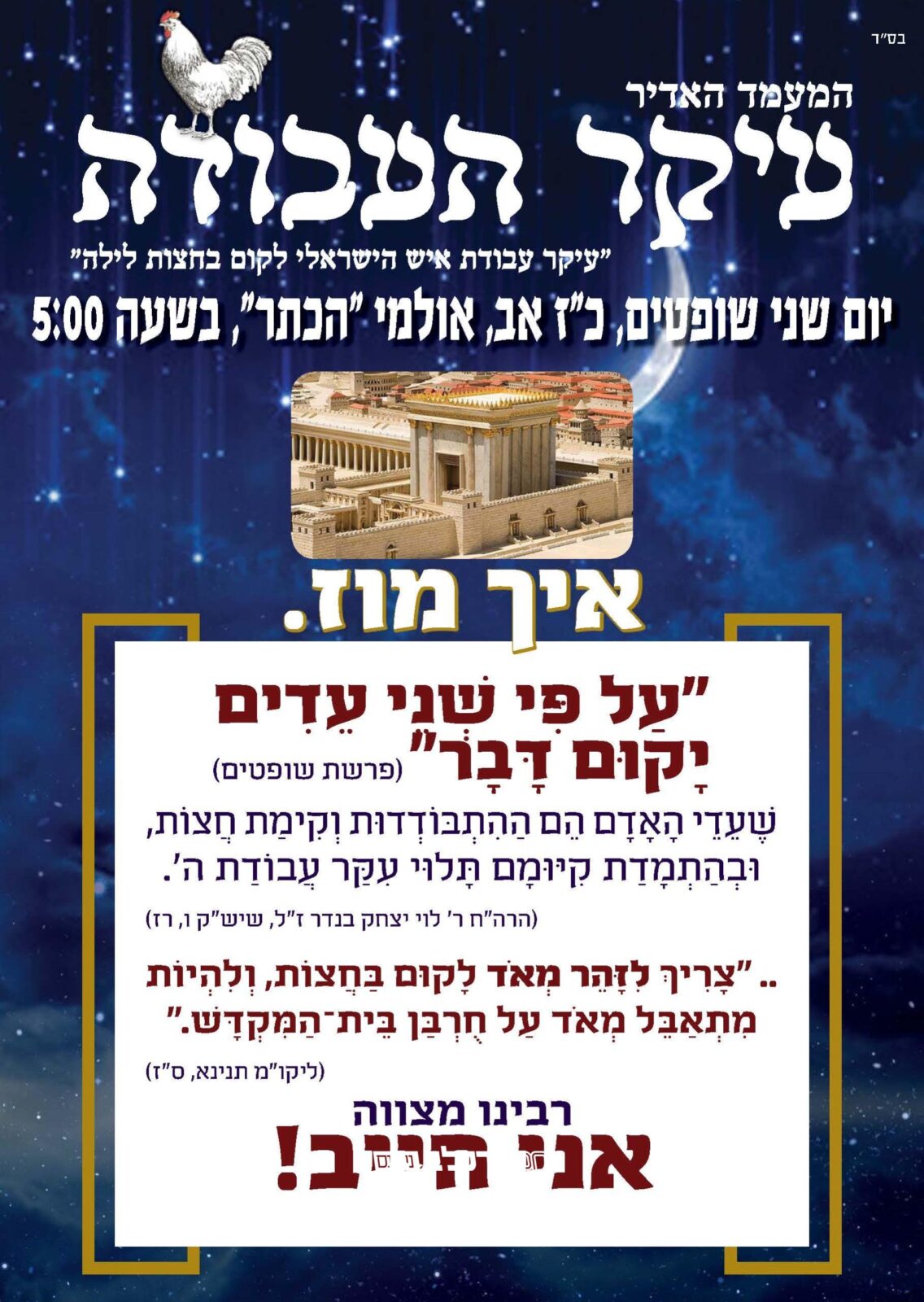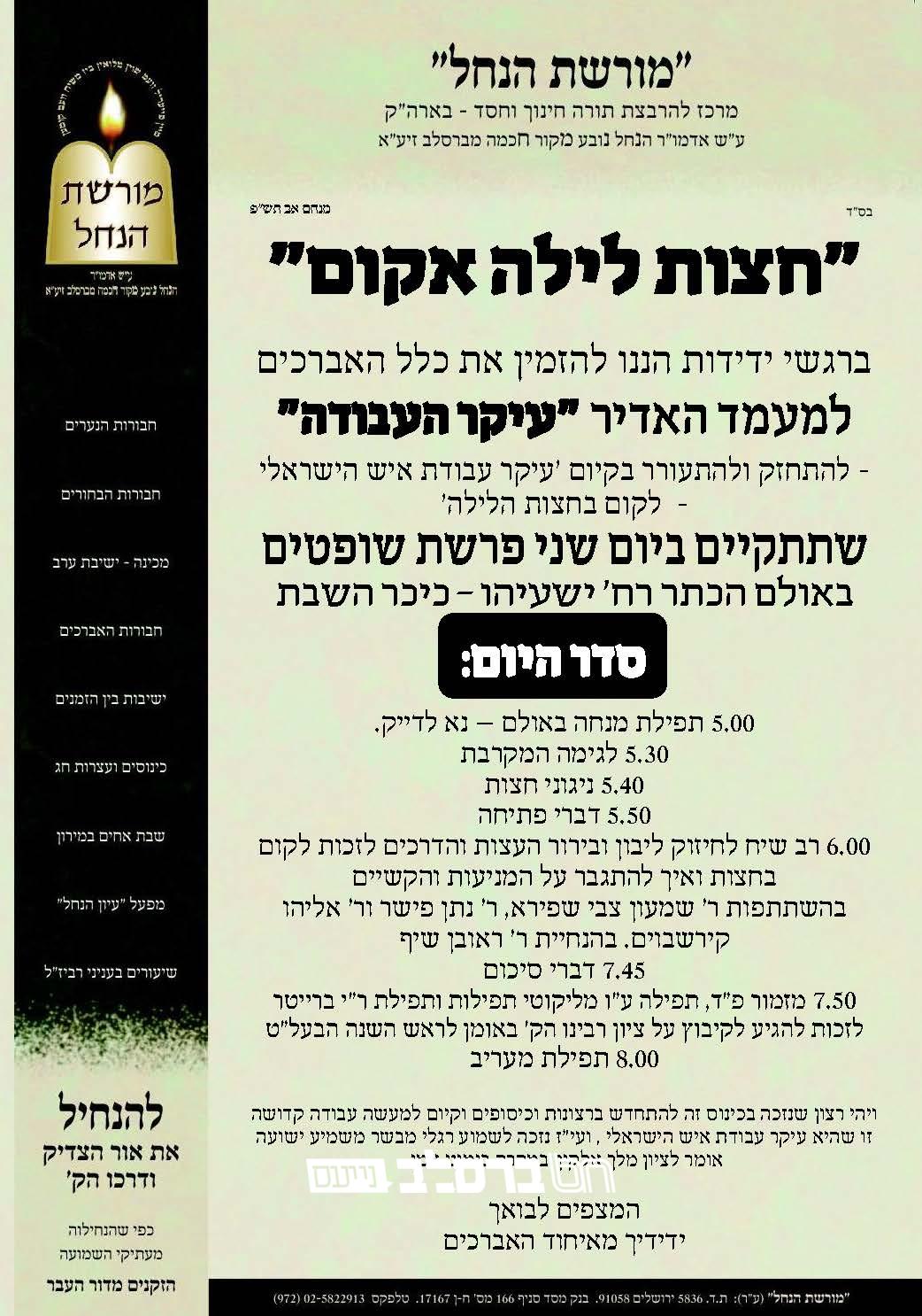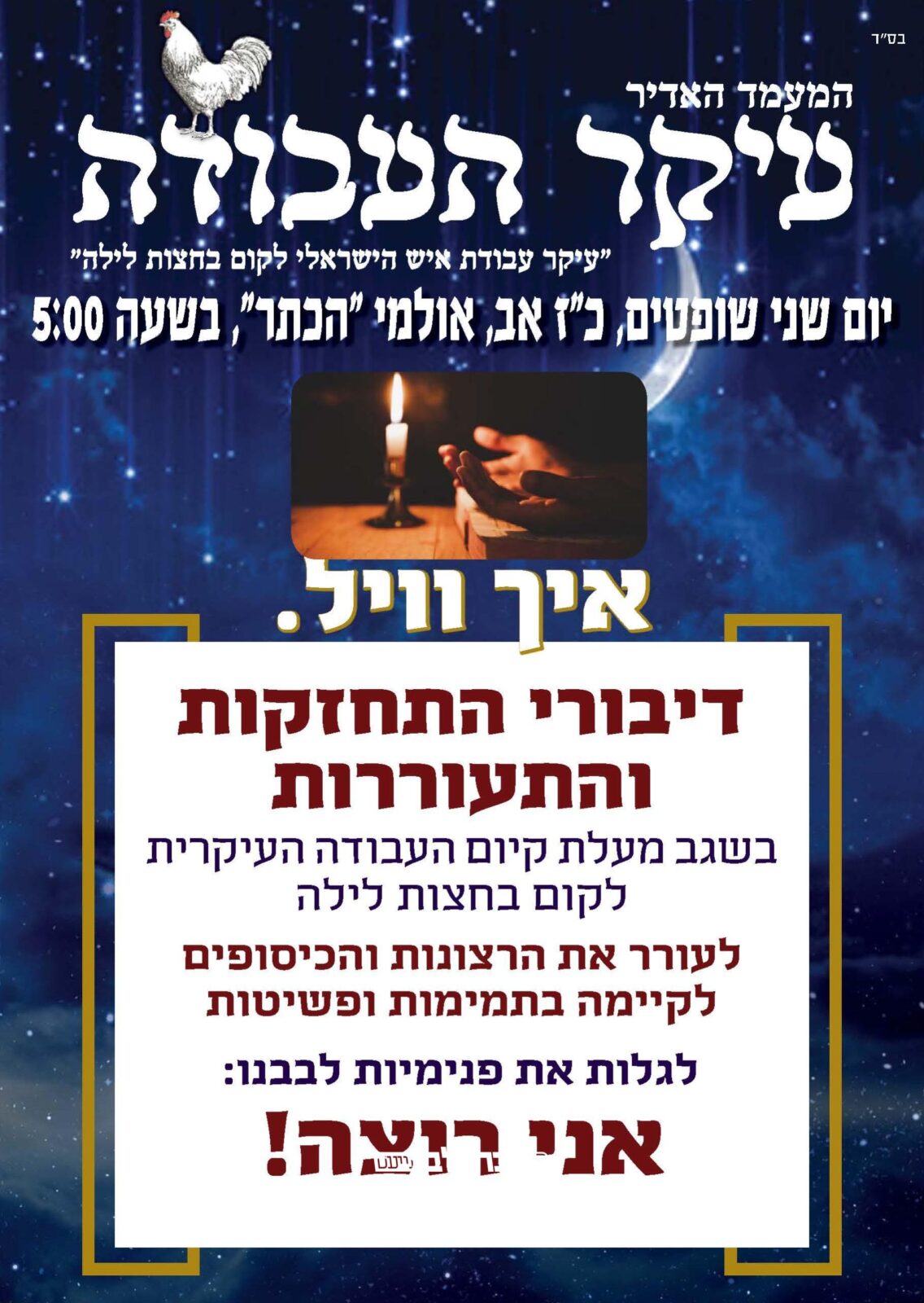 עלון לקראת מעמד "עיקר העבודה" שע"י ארגון מורשת הנחל, לחיזוק בקיום קימה חצות הלילה.