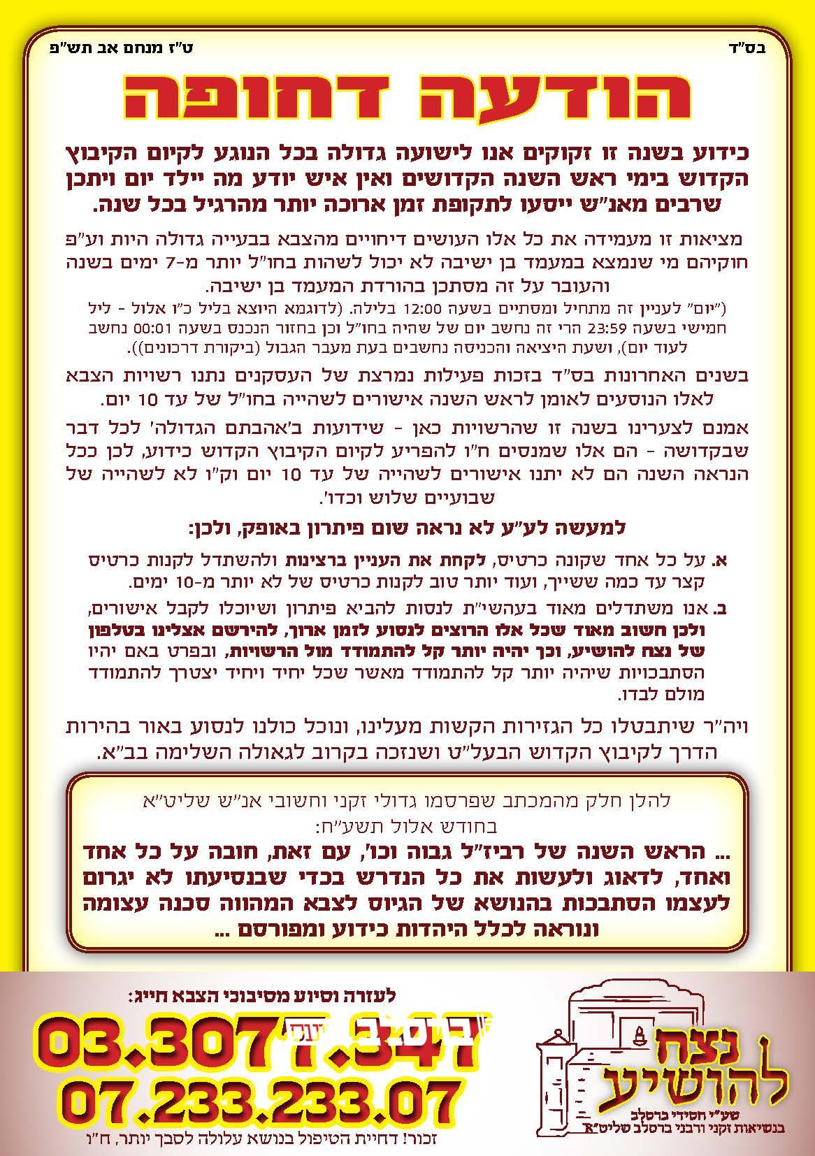 ניתן לשלוח עלונים ומודעות לפרסום ב'ברסלב נייעס'