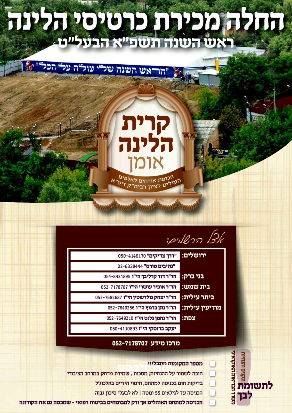 קיבוץ תשפ"א • הכנסת האורחים – 'קריית הלינה – אומן' החל במכירת כרטיסים לקראת הראש השנה של רבינו הקדוש: לקראת ימי ראשקרא עוד ←