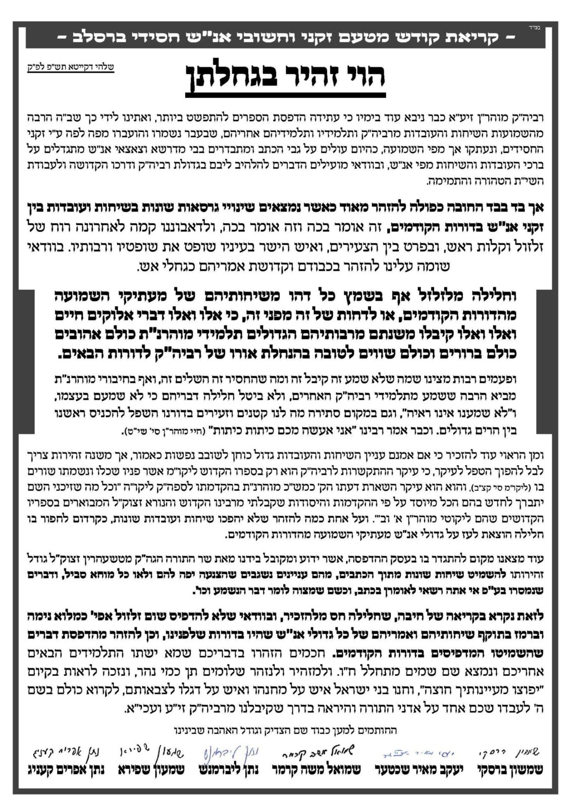 חדשות ברסלב » עצרת מספד » ברסלבע'ר שוהל » רבי נתן ליברמנש » • בתום השלושים להסתלקותו של האי חסידא ופרישא איש…