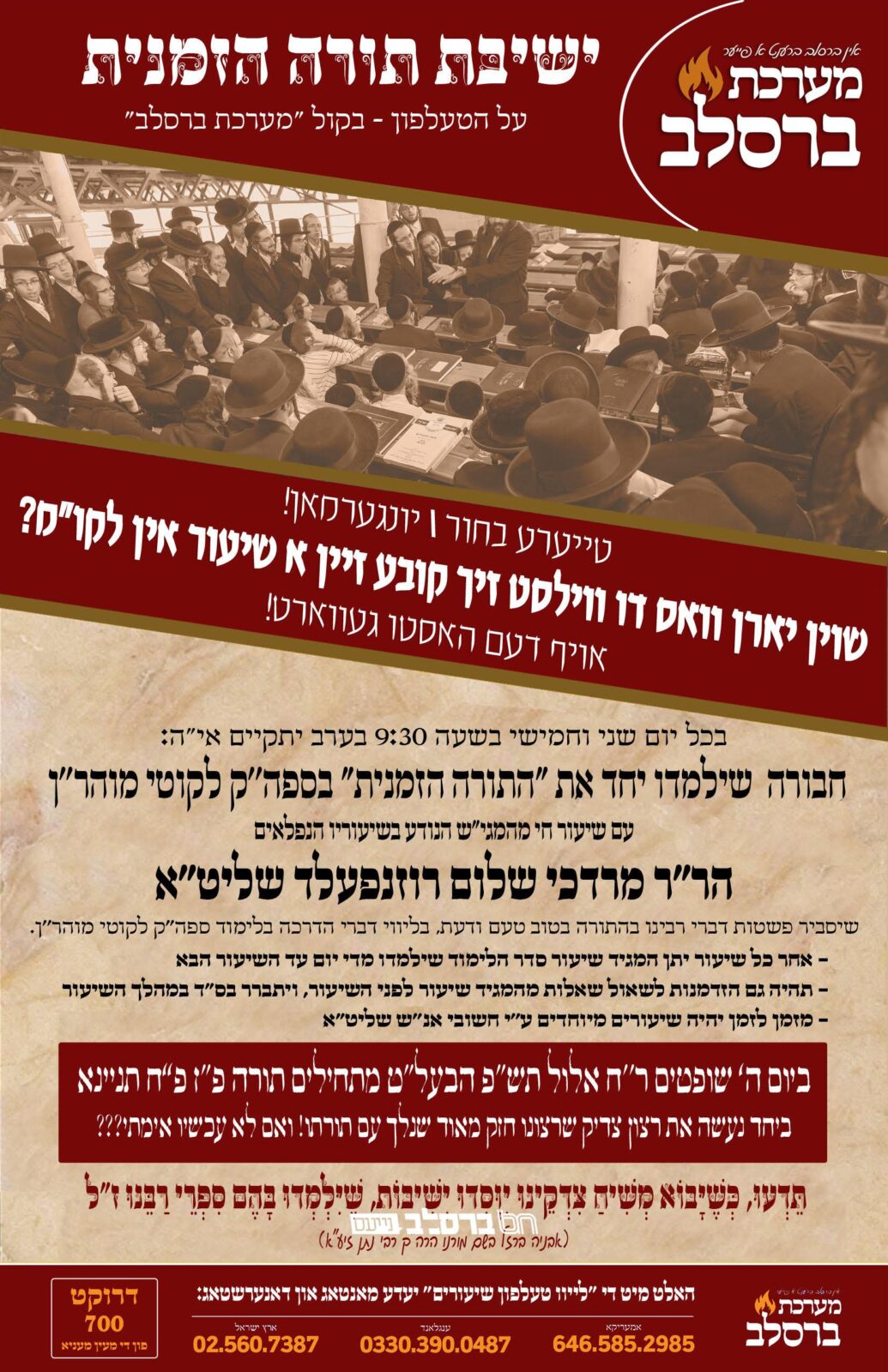 בשורה טובה תדשן • קול 'מערכת ברסלב' במיזם חדש: הקמת ישיבה ללימוד ה"תורה הזמנית": טייערע בחור \ אינגעמאן שוין יארןקרא עוד ←