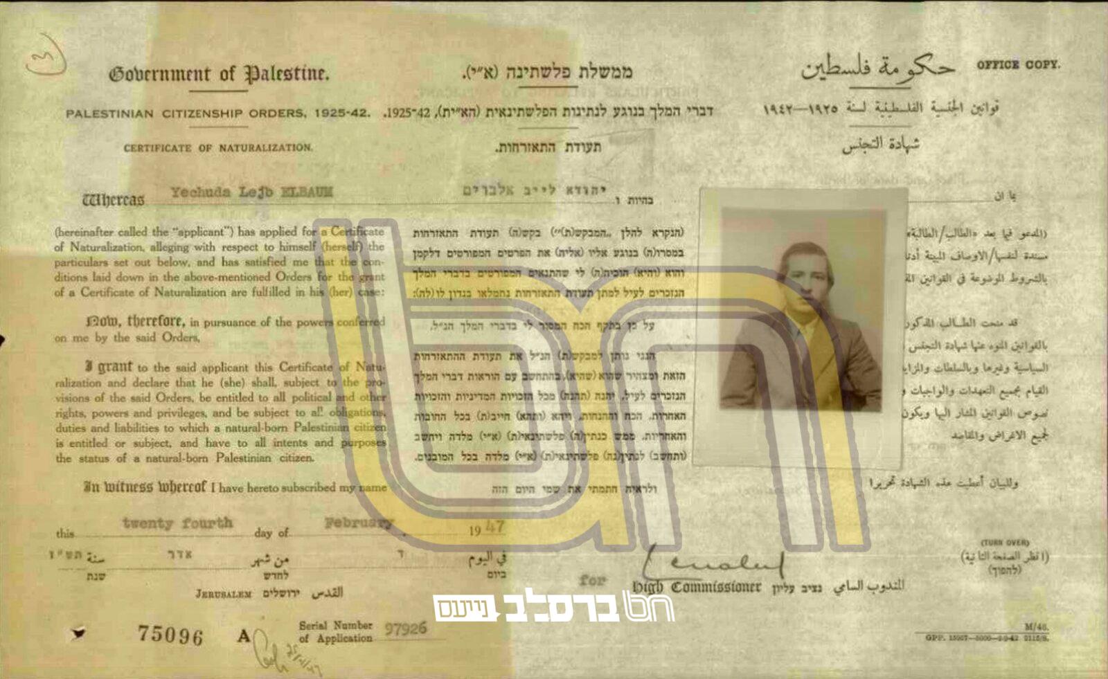 אולם נשיא אמריקה דאז, התאכזר ליהודים ולא נתן את אישורו לעלייתם של מאות היהודים. בסופו של דבר עלה אבי בשנת תרצ"ז לארץ ישראל, כאשר בדרכים מופלאות הצליח אבי לקבל 'אישור עלייה לארץ', מוצר שהיה נדיר בימים ההם.