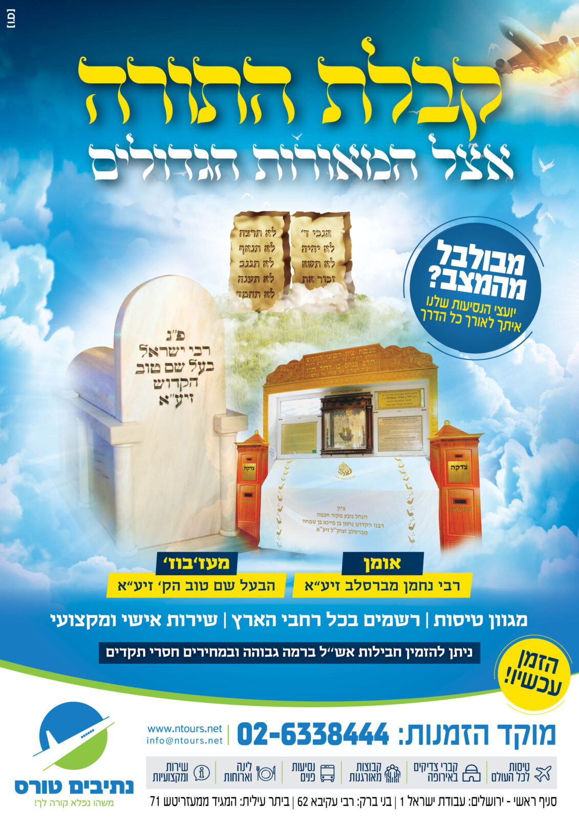 'נתיבים טורס' עם מבחר טיסות לחג השבועות – מתן תורה בעיר הגעגועים אומן על ציון רבינו הקדוש רבי נחמן מברסלב או בעיר מזיבוז על ציון הבעש"ט הקדוש זיע"א: