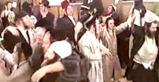 שמחת פורים בעין העדשה • אנשי שלומינו חסידי ברסלב לומדי ומתפללי בית הכנסת 'כולל חצות ביתר' שבעיר ביתר עילית, בעיצומם